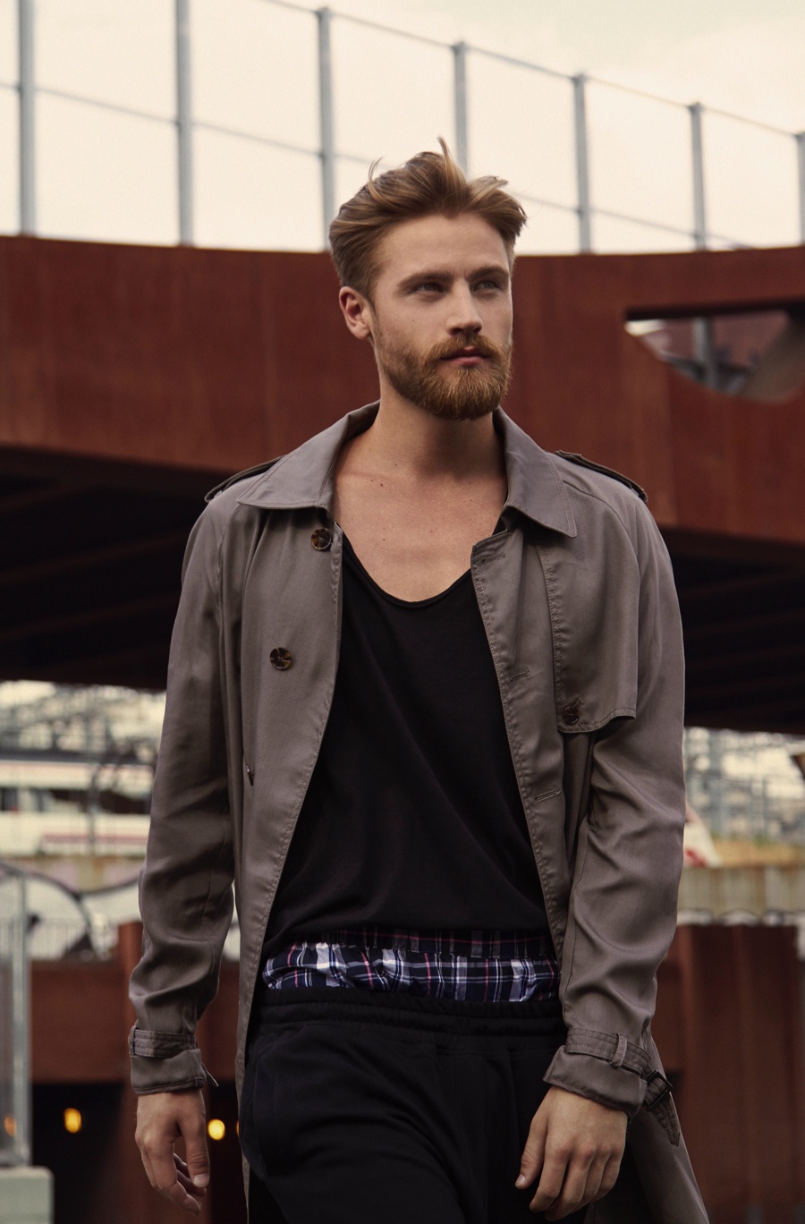 Filip wears joggers Adidas, trench Zara, t-shirt and boxers H&M.