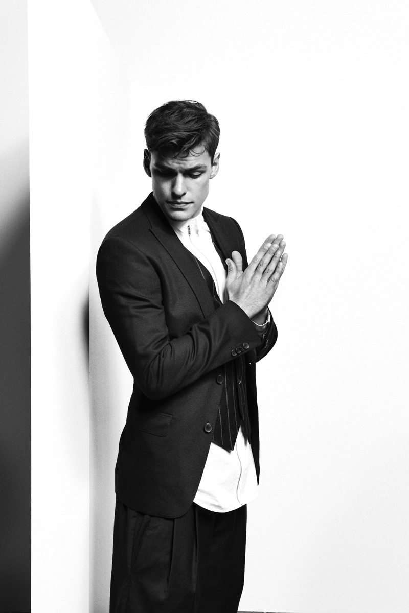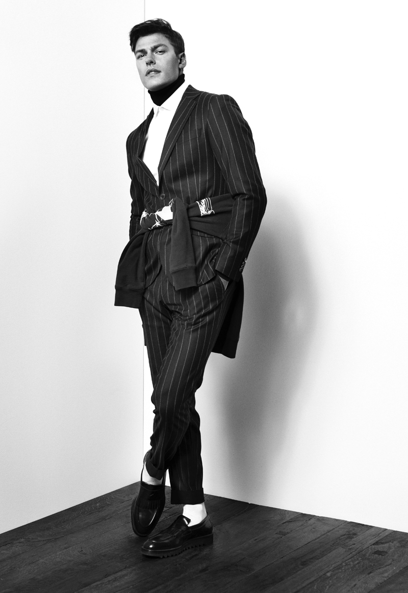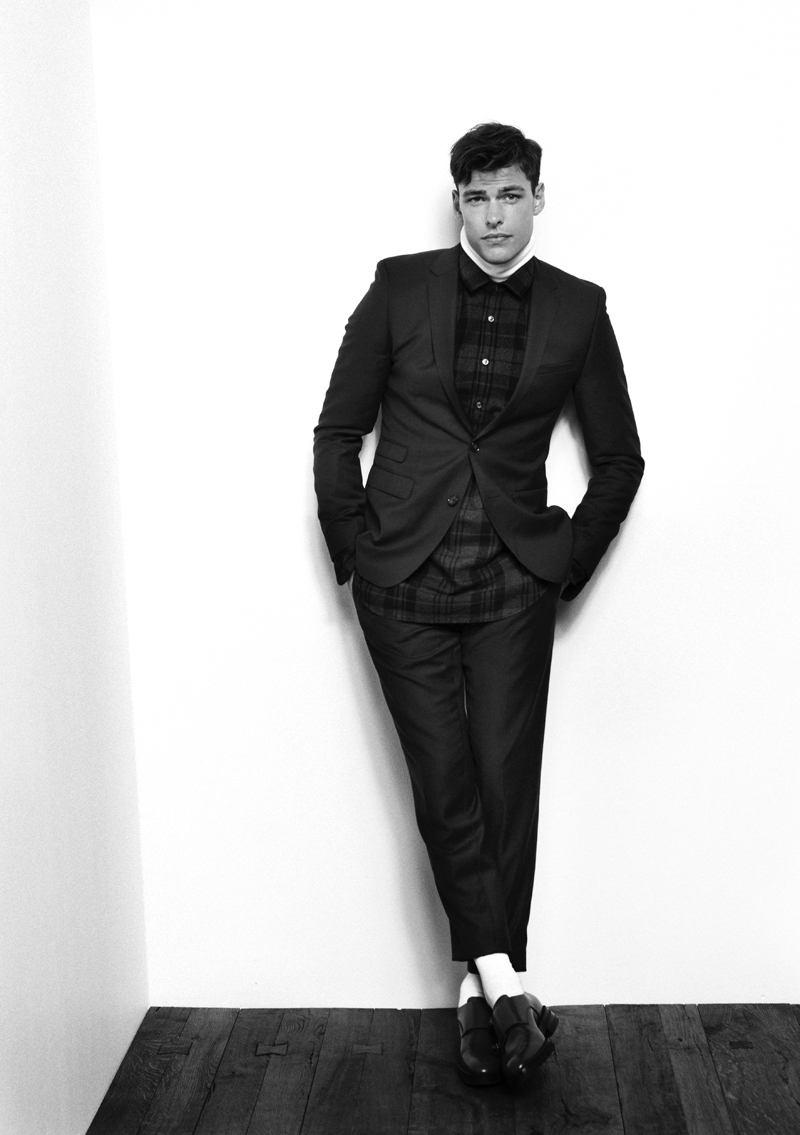 PinFilip wears suit Oscar Jacobson, turtleneck BOSS Black, shirt Filippa K, sweater Our Legacy, shoes HUGO and socks Falke.