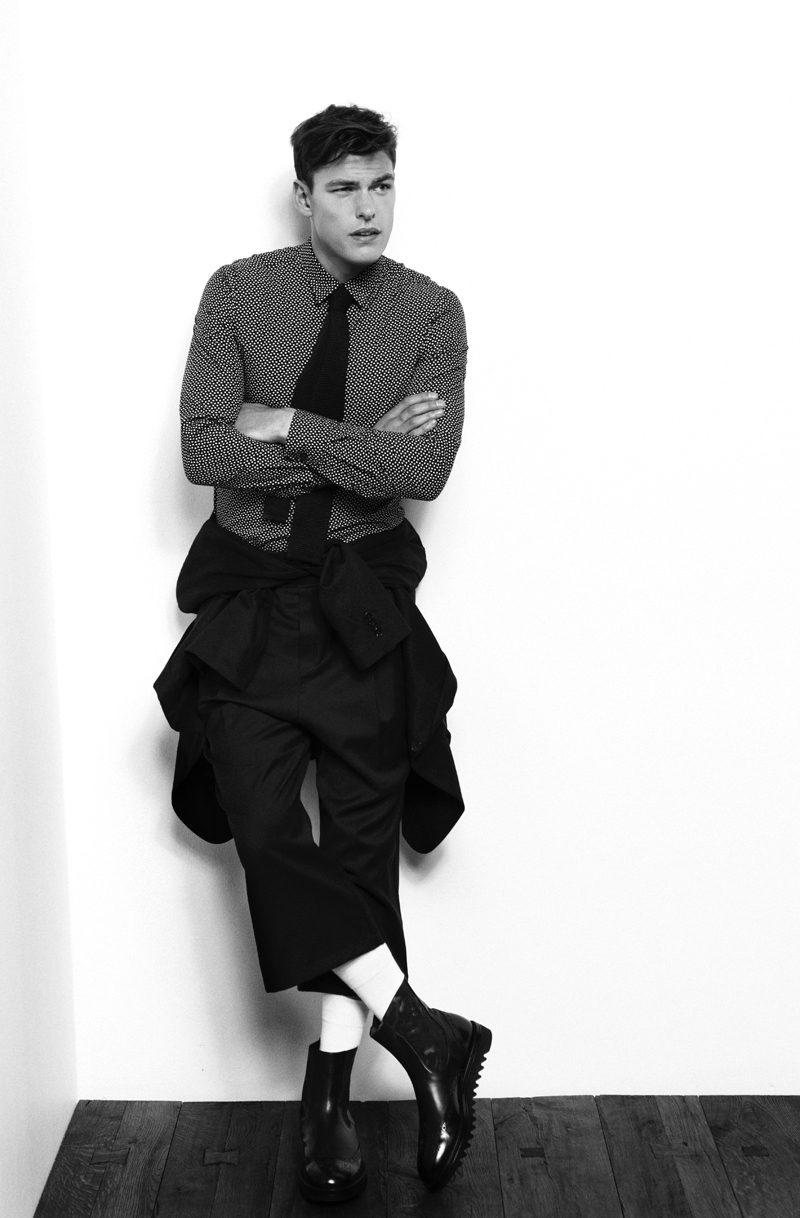 PinFilip wears shirt J.Lindeberg, blazer and tie BOSS Man, trousers Odeur, boots HUGO and socks Falke.