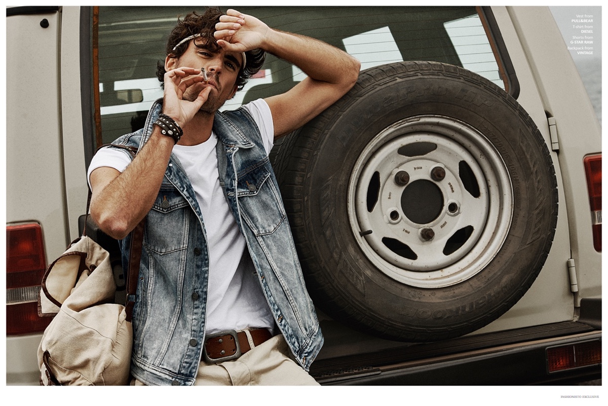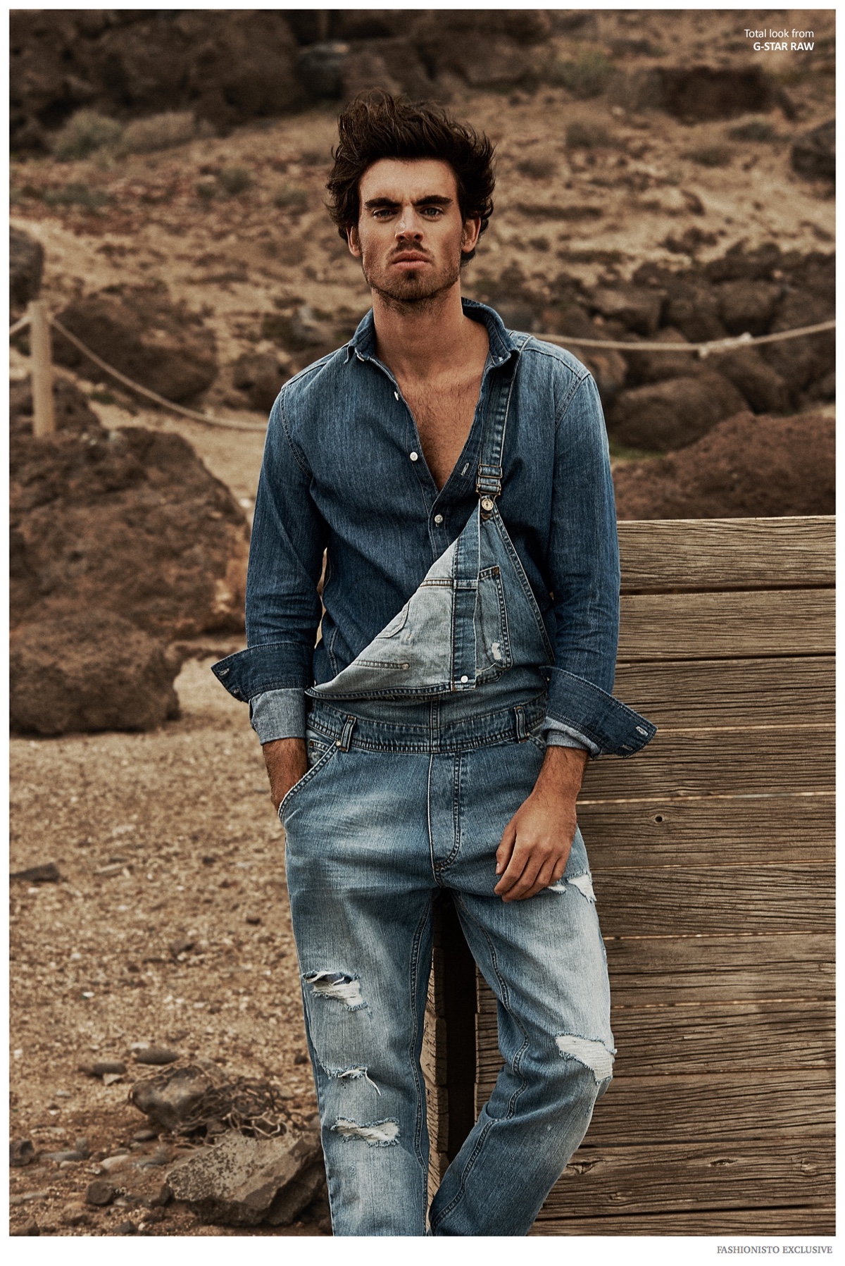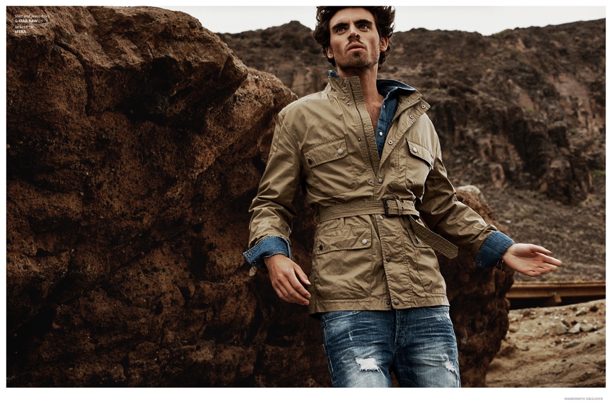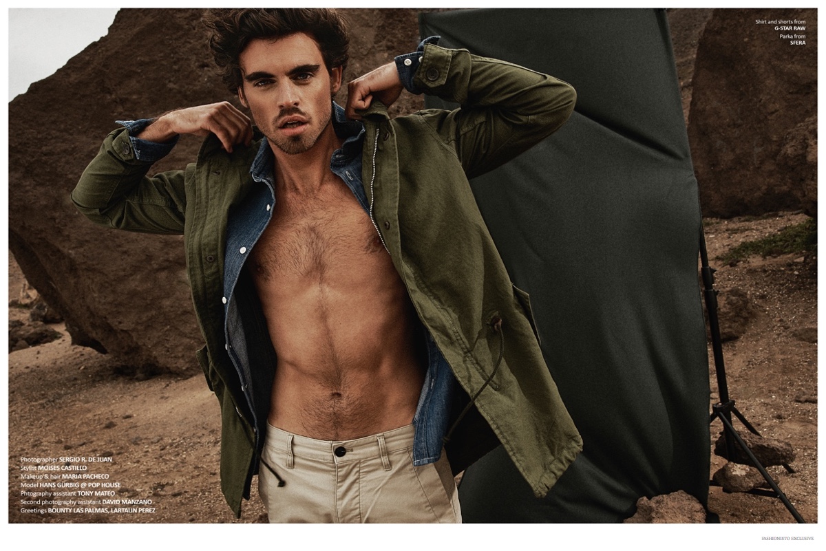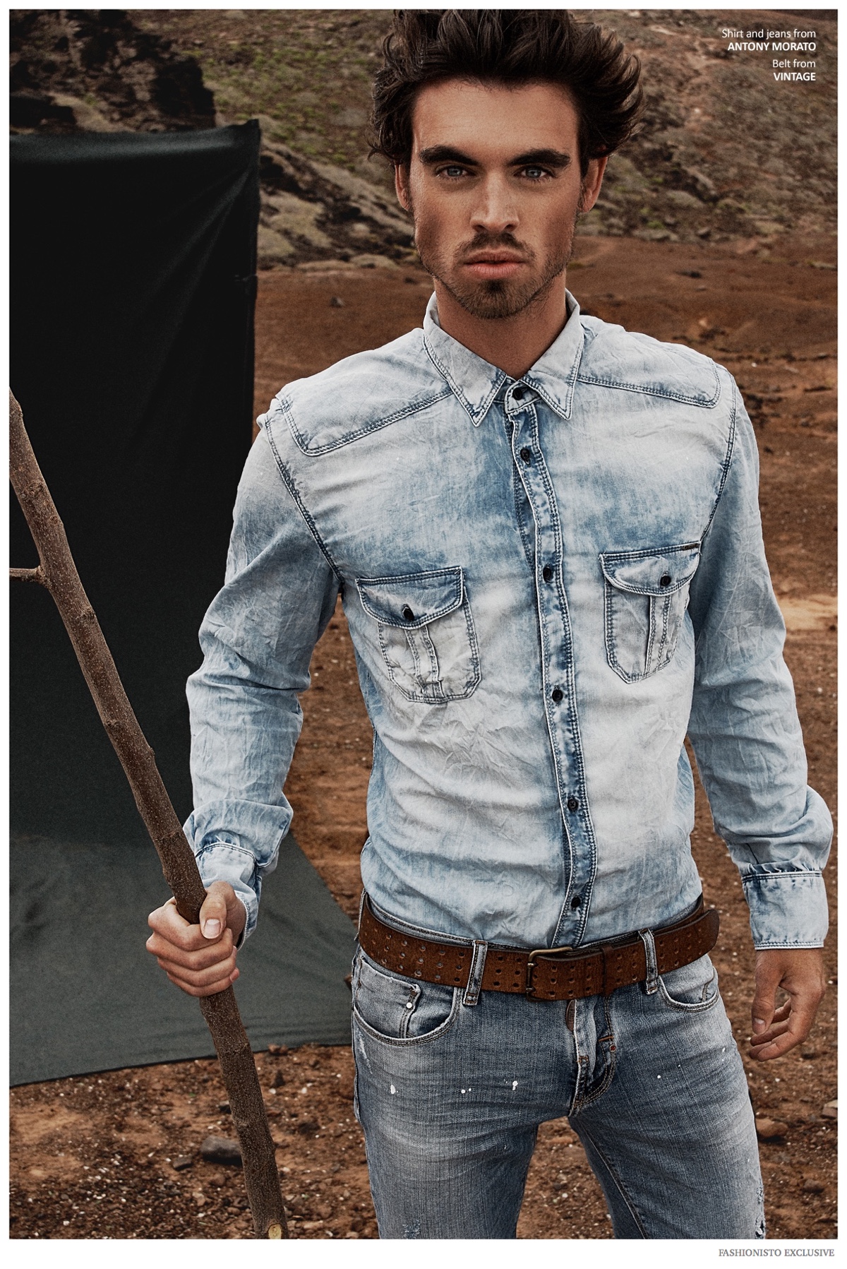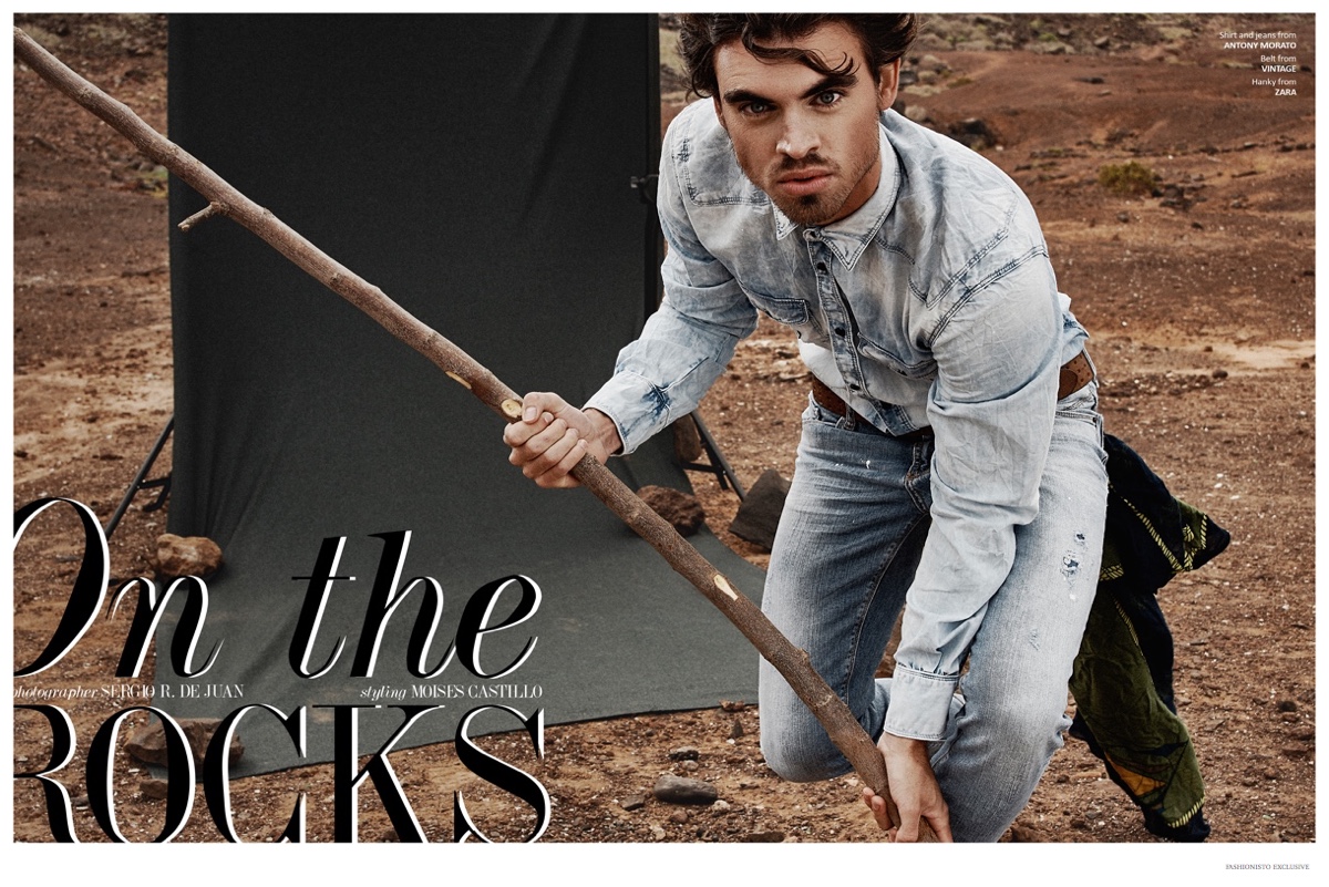 Sergio R. de Juan acts as photographer for our most recent exclusive. Honing in on a denim style narrative, de Juan connects with stylist Moisés Castillo for a feature starring POP HOUSE model Hans Gürbig. Photographed at a desert location, Hans serves up playful denim fashions that pull together staples from Antony Morato, G-Star Raw and Diesel, among other labels. / Grooming by Maria Pacheco.