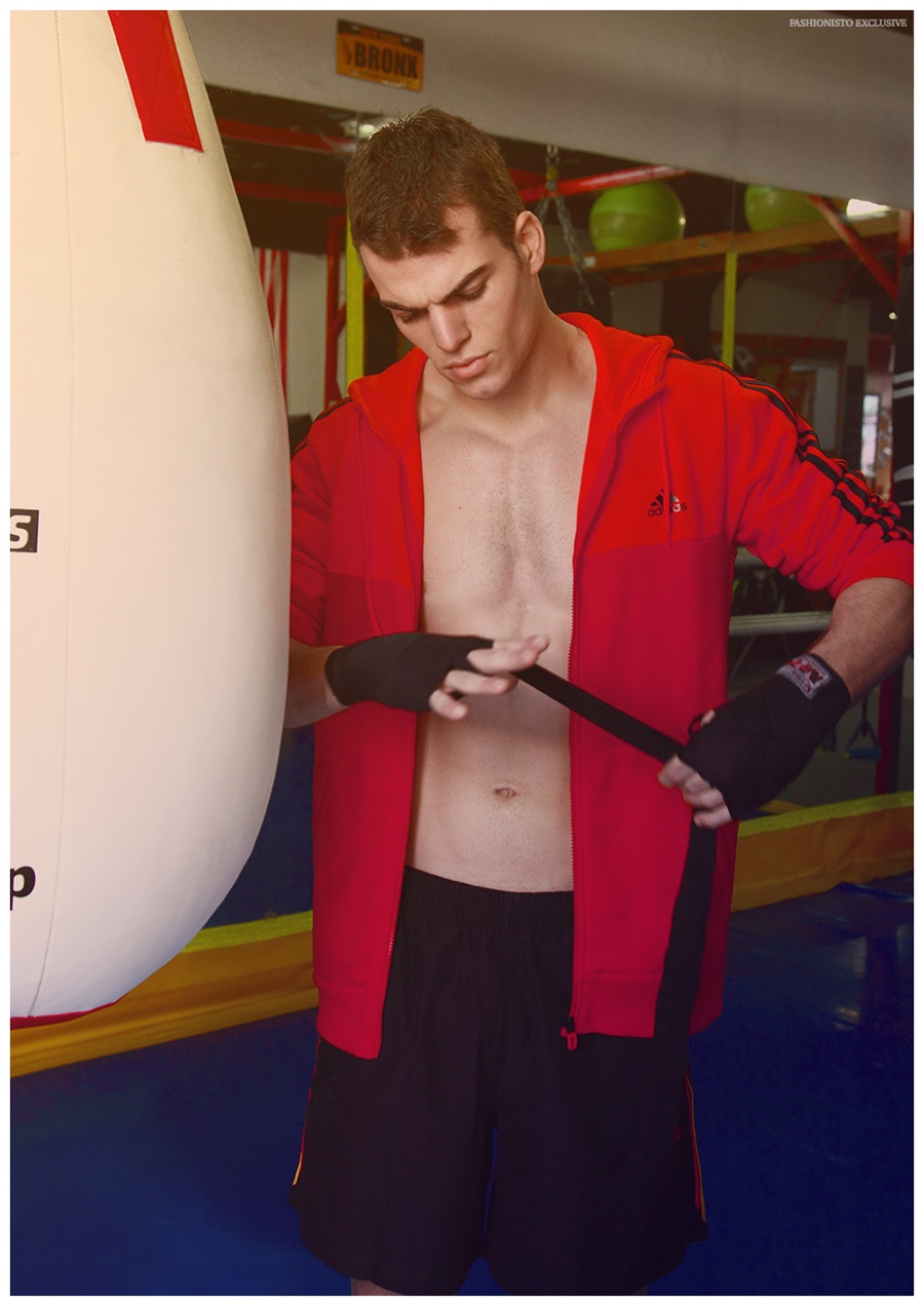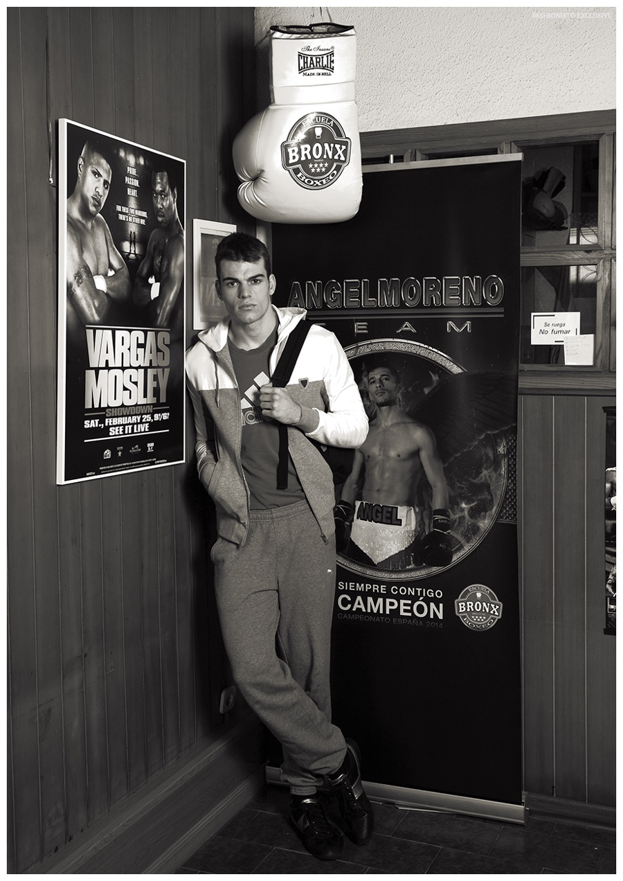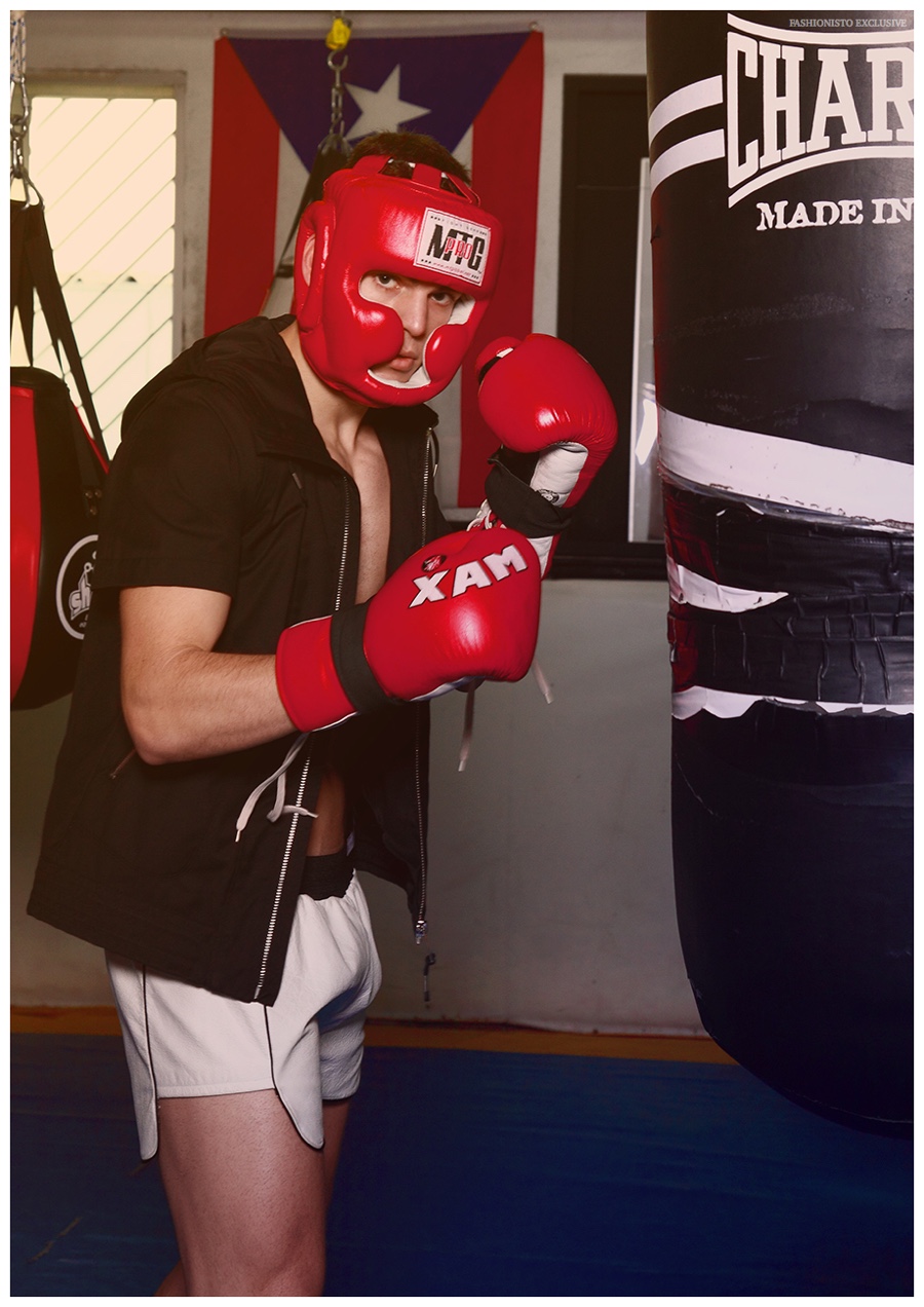 After a formal introduction, we catch up with Uno model Jorge Vazquez. Playing boxer for the day, Jorge is photographed by Félix del Rincón for our latest exclusive. Taking in a day of training, Jorge is outfitted in sporty garments, accessorized with boxing pieces, pulled together by KOOK Styling. / Style assistance by Jorge Sacristan. Grooming by Belen Sanchez. Special thanks to Escuela de Boxeo Bronx (Madrid).