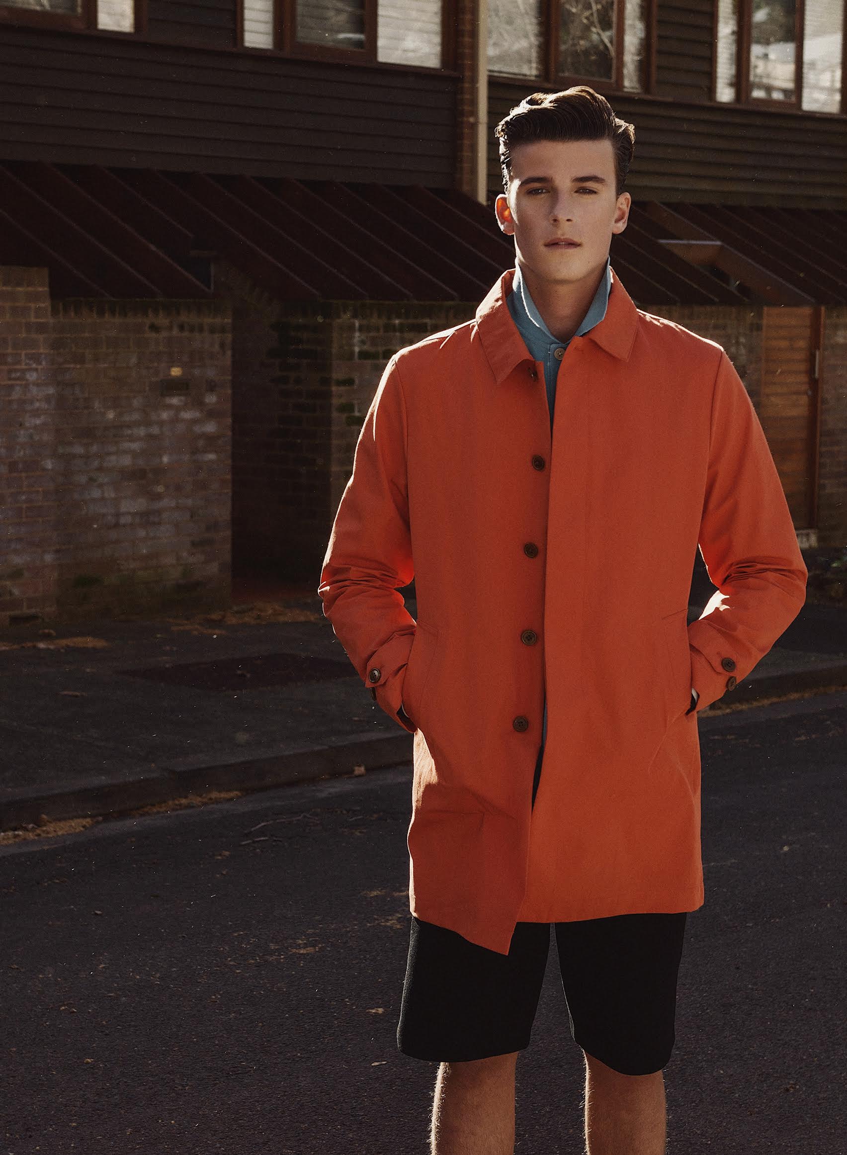 PinLachie wears coat GANT, polo Paul Smith and shorts Alexander Wang.