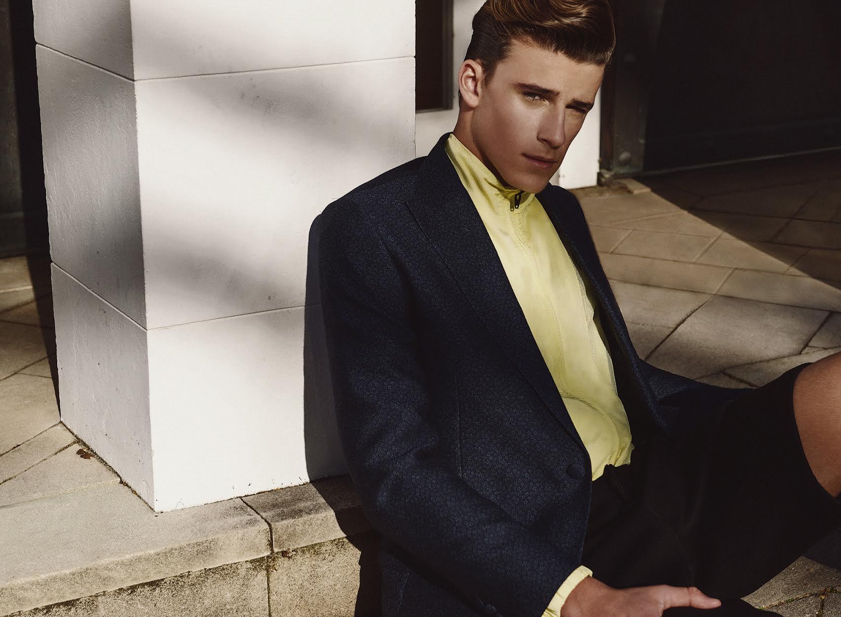 PinLachie wears tee Sandro.PinLachie wears blazer J.Lindberg, shorts and jacket Alexander Wang.PinLachie wears tee Sandro, pants J.Lindberg, socks Happy Socks and shoes NIKE.PinLachie wears top Sandro, pants Hugo Boss, socks Happy Socks and shoes NIKE.PinLachie wears blazer J.Lindberg and jacket Alexander Wang.PinLachie wears coat GANT, polo Paul Smith and shorts Alexander Wang.