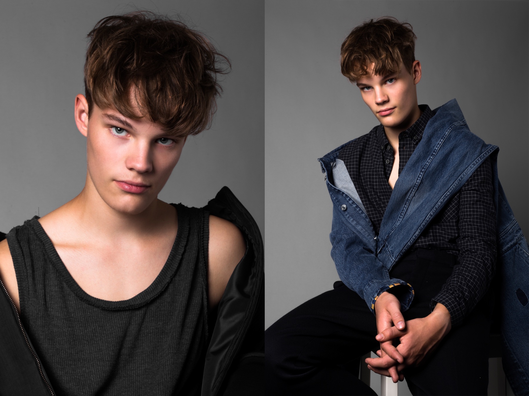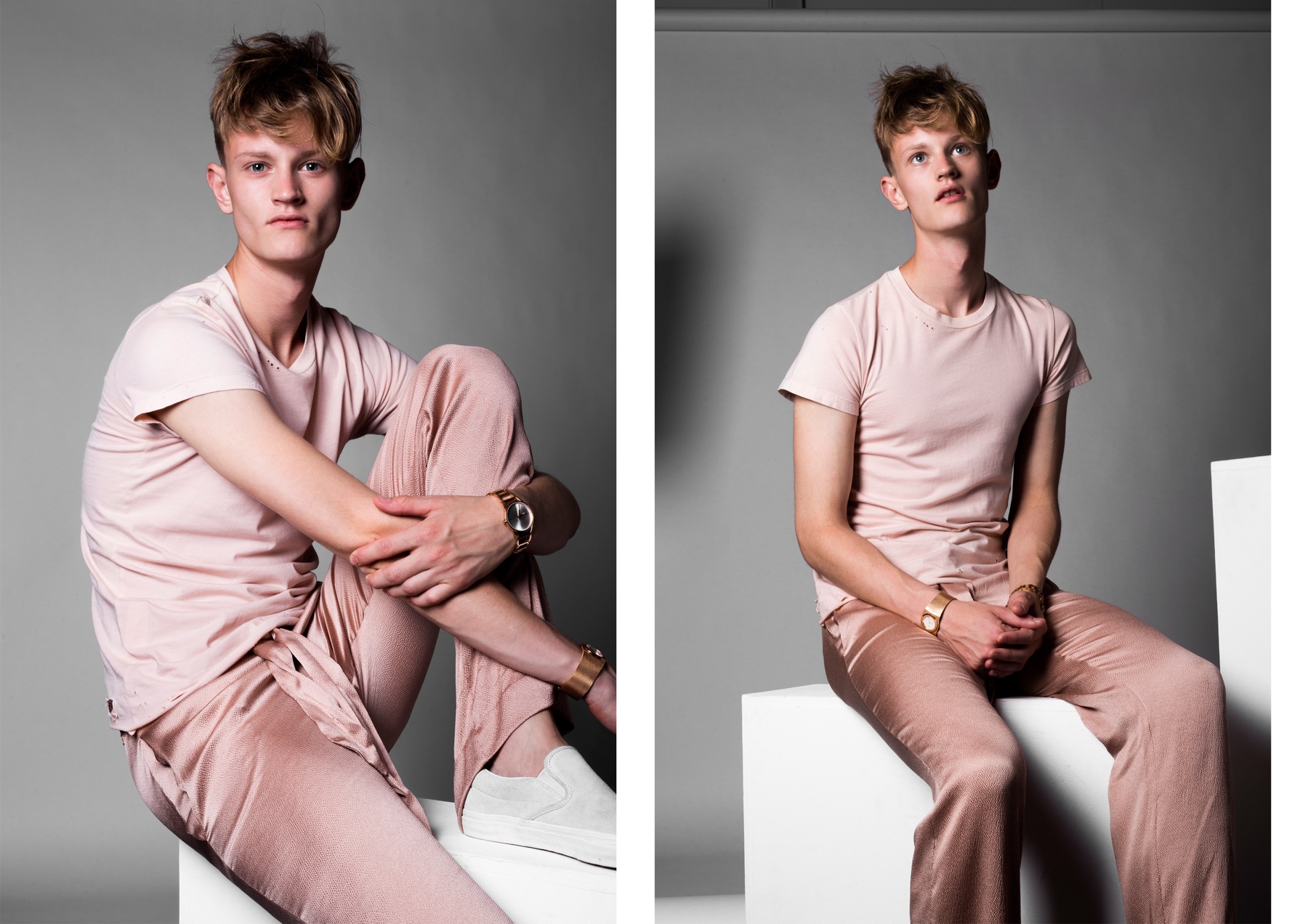 Richesmanagement fresh faces Daan and Daniel exude a boyish charm as they connect with photographer Alexander van Keulen for our most recent exclusive. Outfitted by stylist Ali Javaid, the pair pose for infectious studio images as they don the latest fashions from a host of labels that includes Filippa K and Samsøe. / Makeup by Charlotte Niketic.
