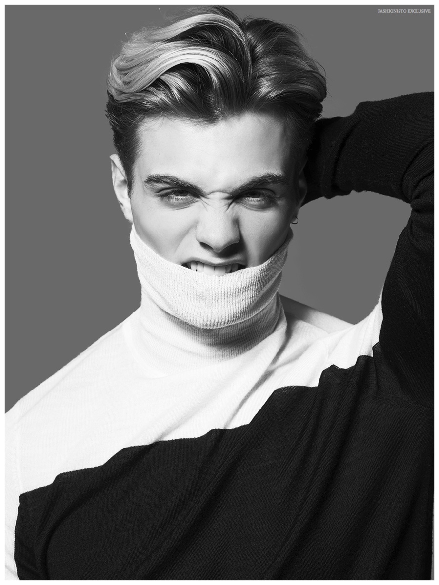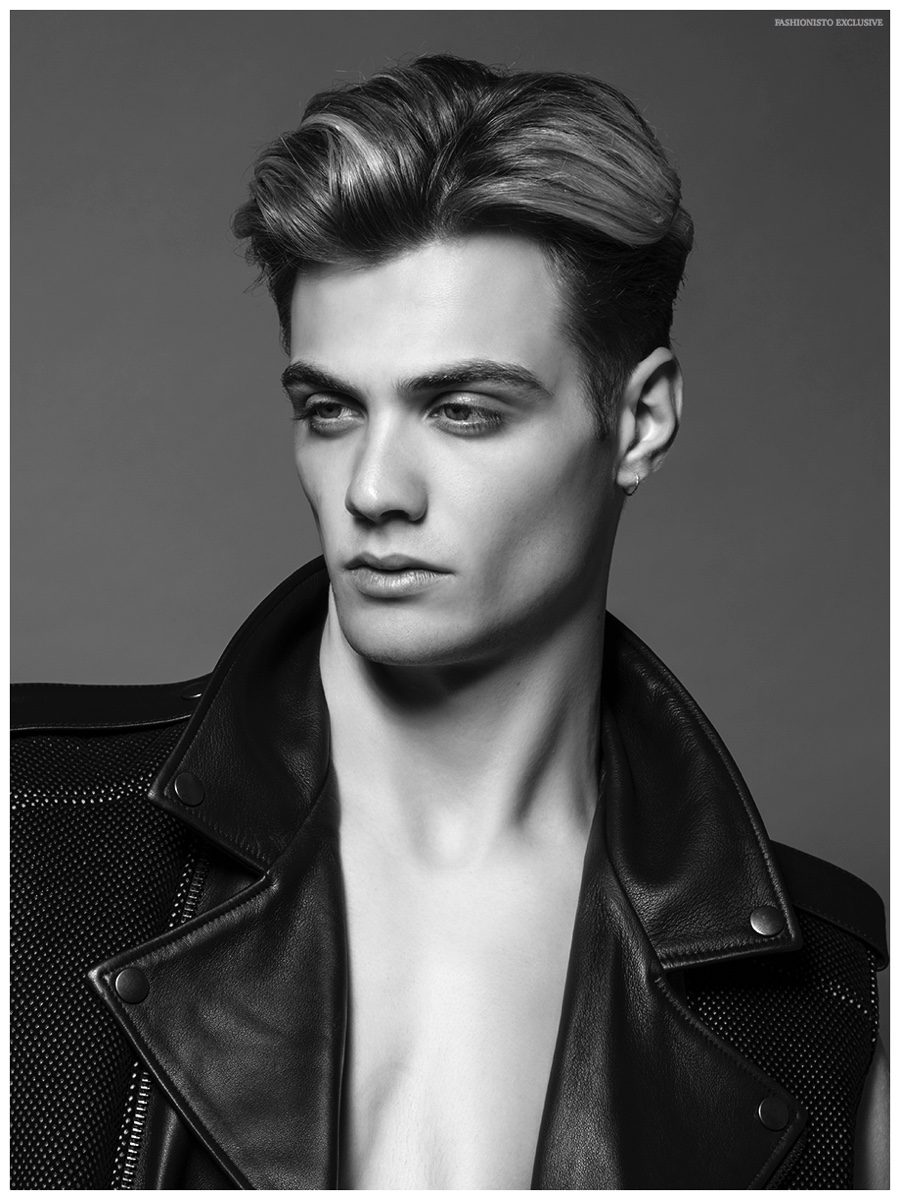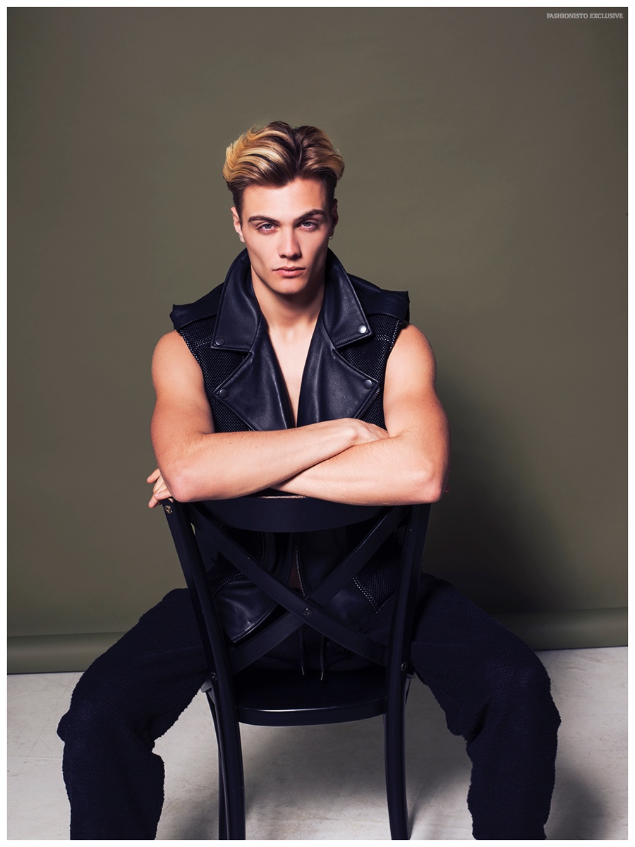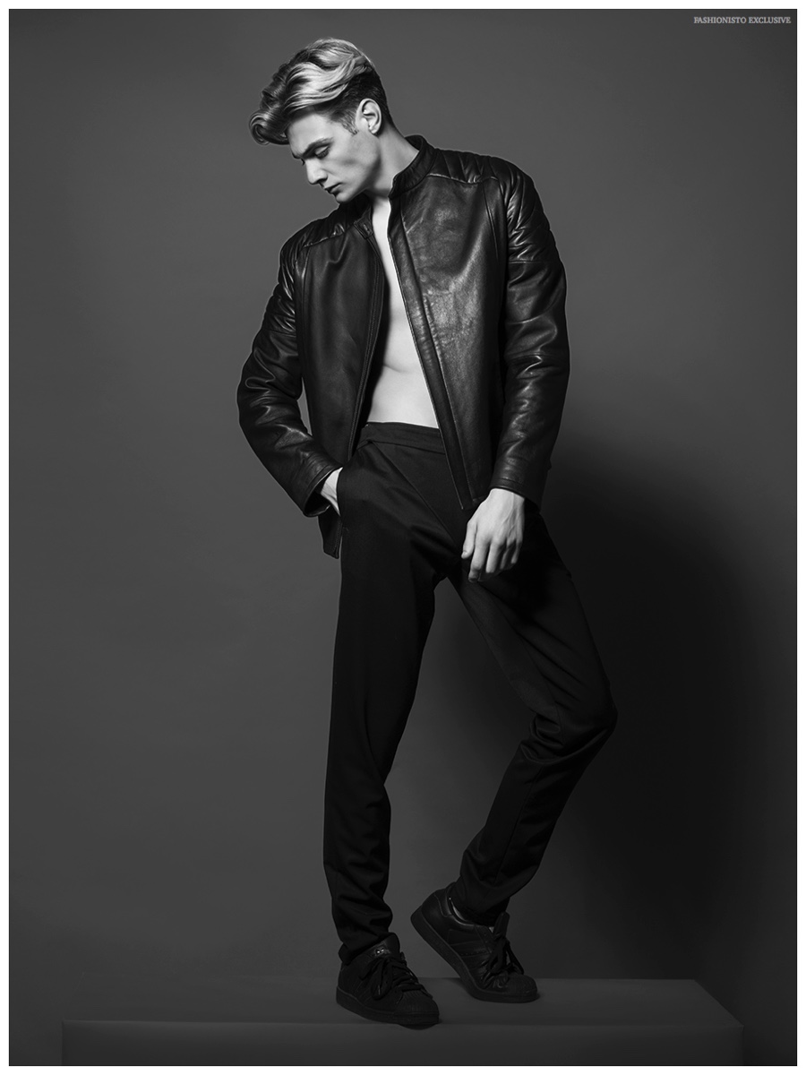 AMCK model up and comer Nathan Brewer is the latest subject in focus for fashion photographer George Cassapides. With his killer cheekbones and blond highlights, Nathan hits the studio to give us an early look at slick pieces from the fall-winter 2015 collection of ADA + NIK. Channeling his inner bad boy, Nathan is front and center in leather jackets and trendy separates featuring modern proportions.