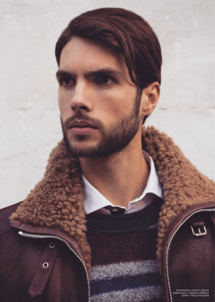 Laurent wears sheepskin jacket Delan, crewneck sweater Daniele Fiesoli and shirt Paolo Pecora.