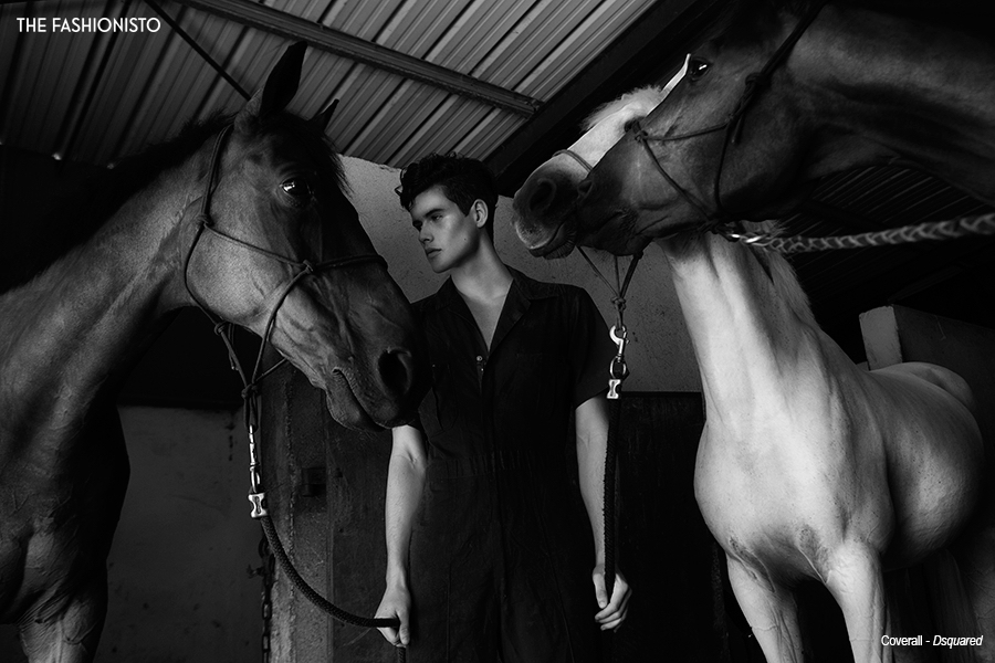 Stable Prisoner–Model Raphaël Say enters the horse stable for a new exclusive lensed by photographer Frederic Monceau. The 21 year-old model spends a day with the horses, resulting in beautiful black & white images captured with a focus on essential vintage style. / Assistance by Helene, Emma and Marie Guilhemjouan.