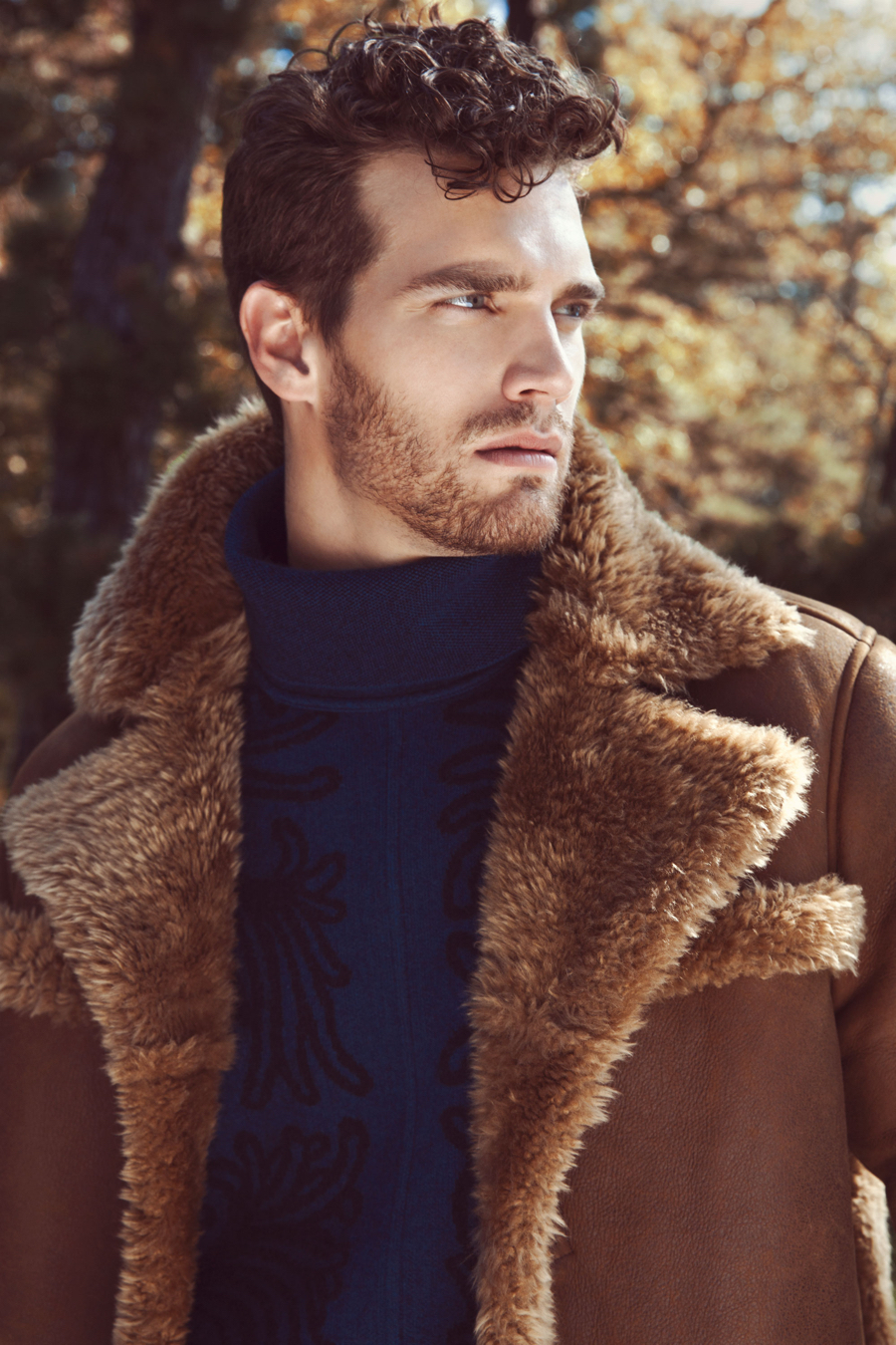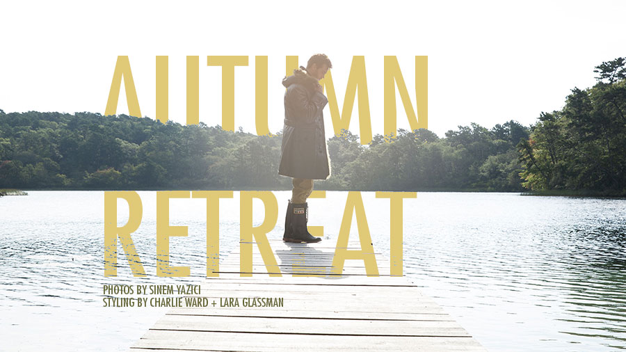 Photographer Sinem Yazici joins stylists Charlie Ward and Lara Glassman for quite the autumn outing. Leaving the bustling city of New York behind, the trio head out to the wilderness with model Sean Harju. Embracing fall layers with a rugged appeal, the Soul Artist Management model is front and center for stunning photos. Pictured while canoeing and relaxing indoors, Sean is picture-perfect in Dsquared2, Bottega Veneta and more. / Grooming by Stefan Kehl.