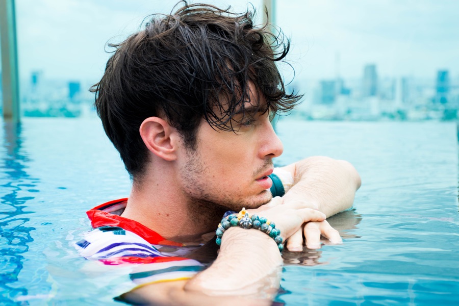 Australian model Sunny Burns (Viviens Model Management/Apple Model Management) returns to our pages with a new story fresh from Huai Khwang, Bangkok. Connecting with fashion photographer Namedmechoo, Sunny takes in a day of relaxation, enjoying a rooftop pool. Styled by Maya Wong, Sunny is pictured in colorful summer fashions and swim shorts from easy brands such as Zara and H&M. / Grooming by Dok-aor Boonpitak.