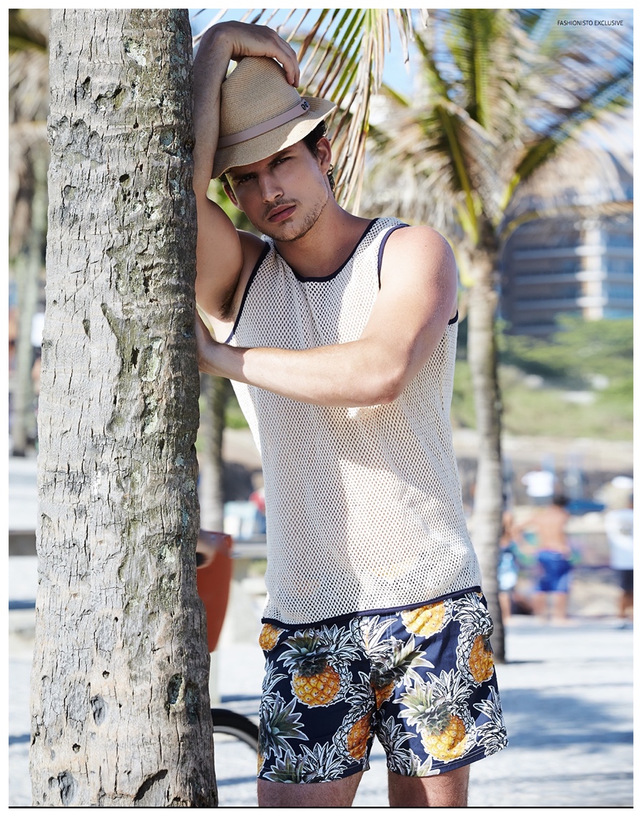 Thiago wears hat Kaminski XY, shirt Missoni and shorts Vilebrequin.