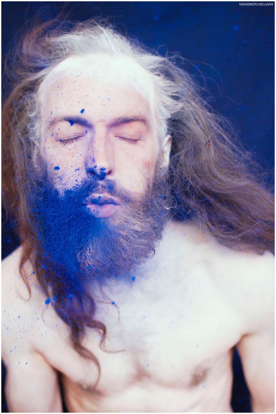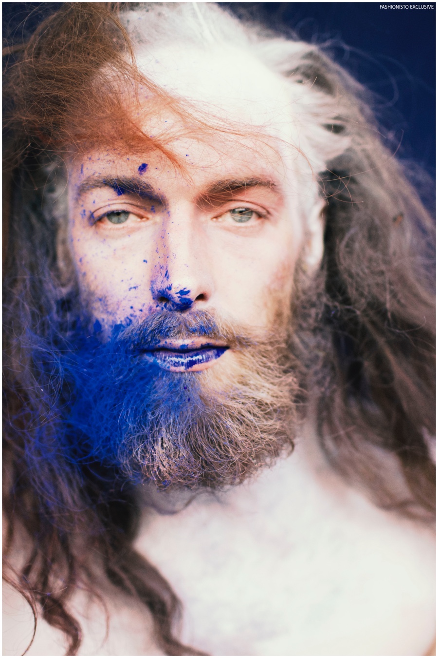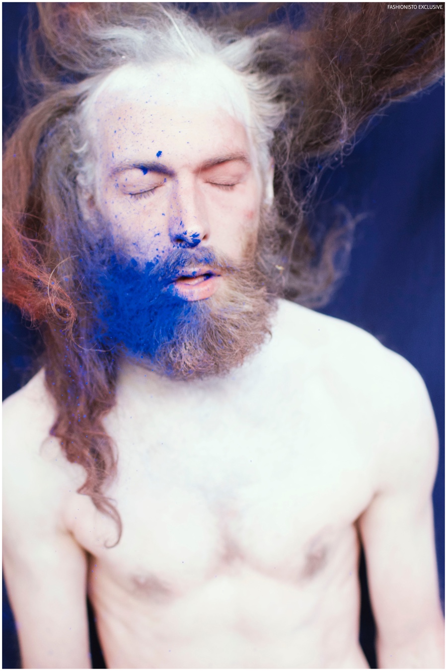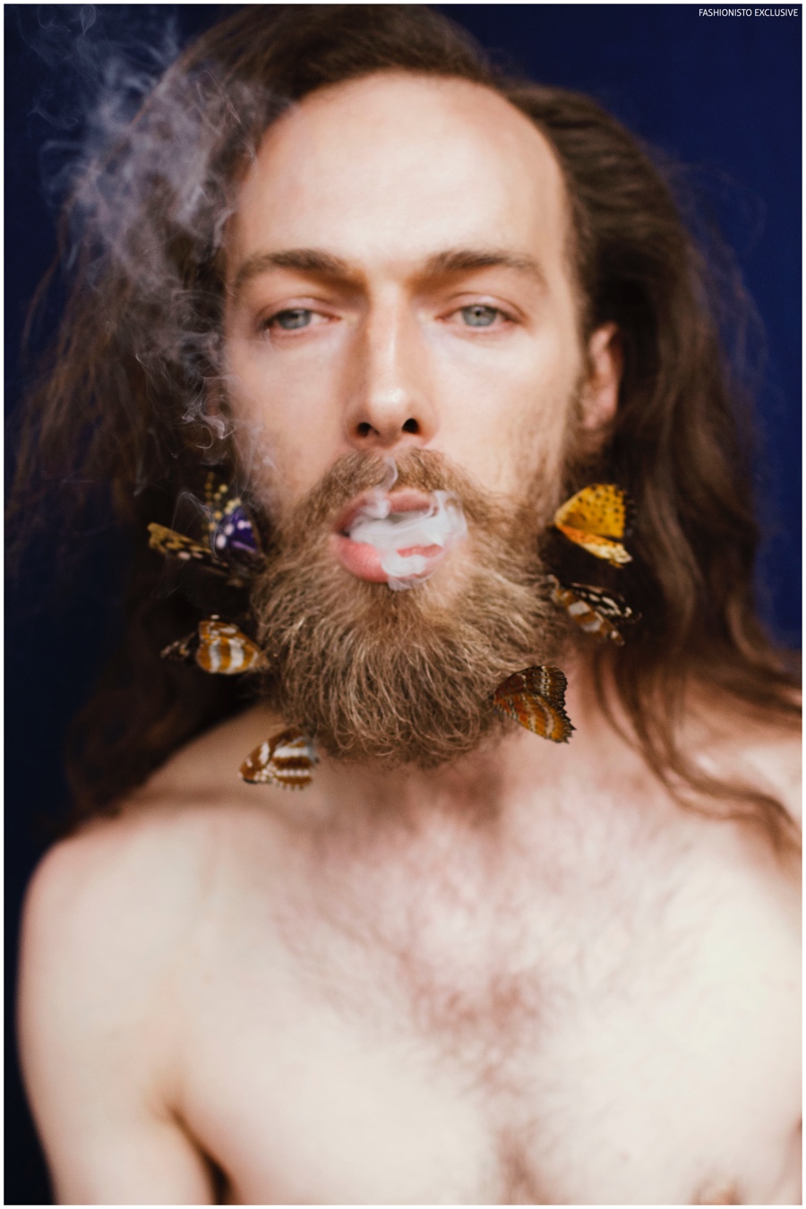 One of our all-time favorite models, Will Lewis returns to our pages with a stunning new exclusive lensed by photographer Rachel Thalia. Entering the photo studio for a beauty series, Will inspires in red, white and blue as his long hair is styled in a relaxed manner by hair artist Anike Rabiu (AKR Styles). Decorated in butterflies and various pigments, Will is groomed by makeup artist Ann Benjamas (Twenty-Two Makeup Studio).