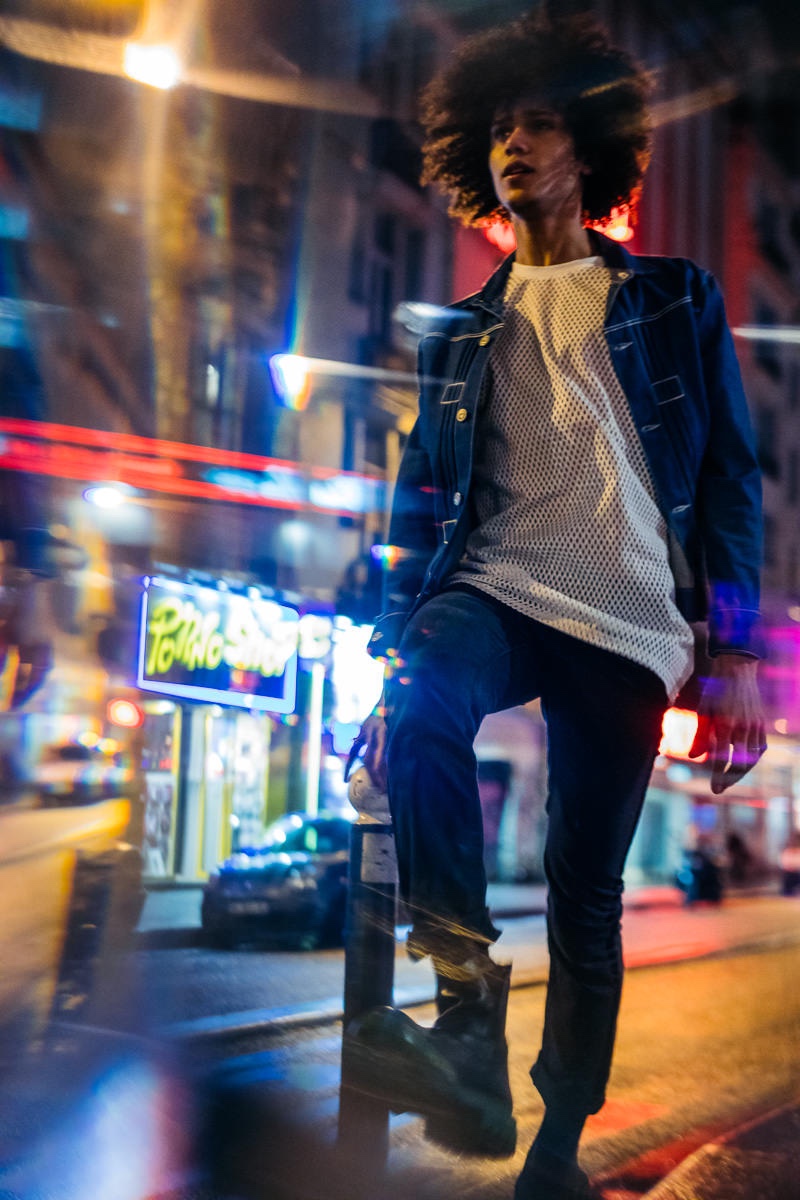 Bruno Fabre takes the Parisian night by storm in a new story. The French model links up with photographer Pierre Turtaut (Scouting One Model/Marilyn) for a striking outing. Embracing slim silhouettes and on-trend clothes, Bruno easily inspires. Exploring the Parisian streets, Bruno wears denim, tailoring, and contemporary jackets. His wardrobe includes brands such as Balenciaga, Levi’s, and Diesel Black Gold.