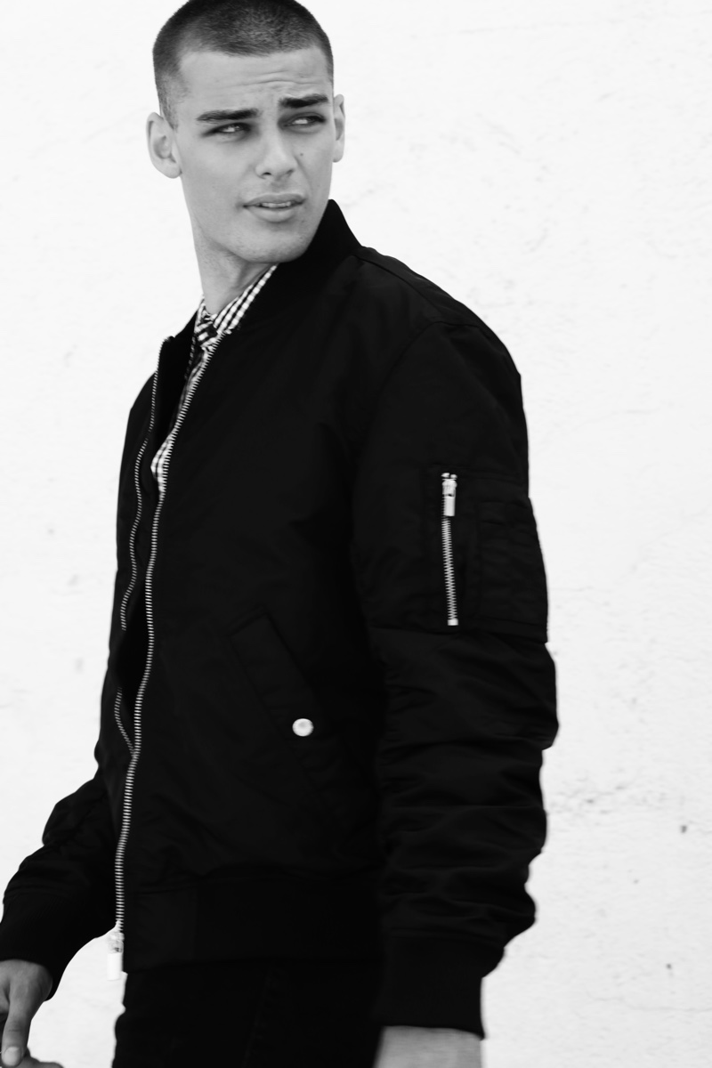 Jose Martinez photographs a new story, which stars Gabriel Alcaide. The Fifth Management Barcelona model embraces skinhead-inspired style as he ventures outdoors into the streets. Gabriel wears a selection of fashions that includes bomber jackets, distressed denim, hoodies, combat boots, and more. The lineup comes together with brands Adidas, Calvin Klein, Diesel, Dr Martens, Nike, and Fila.