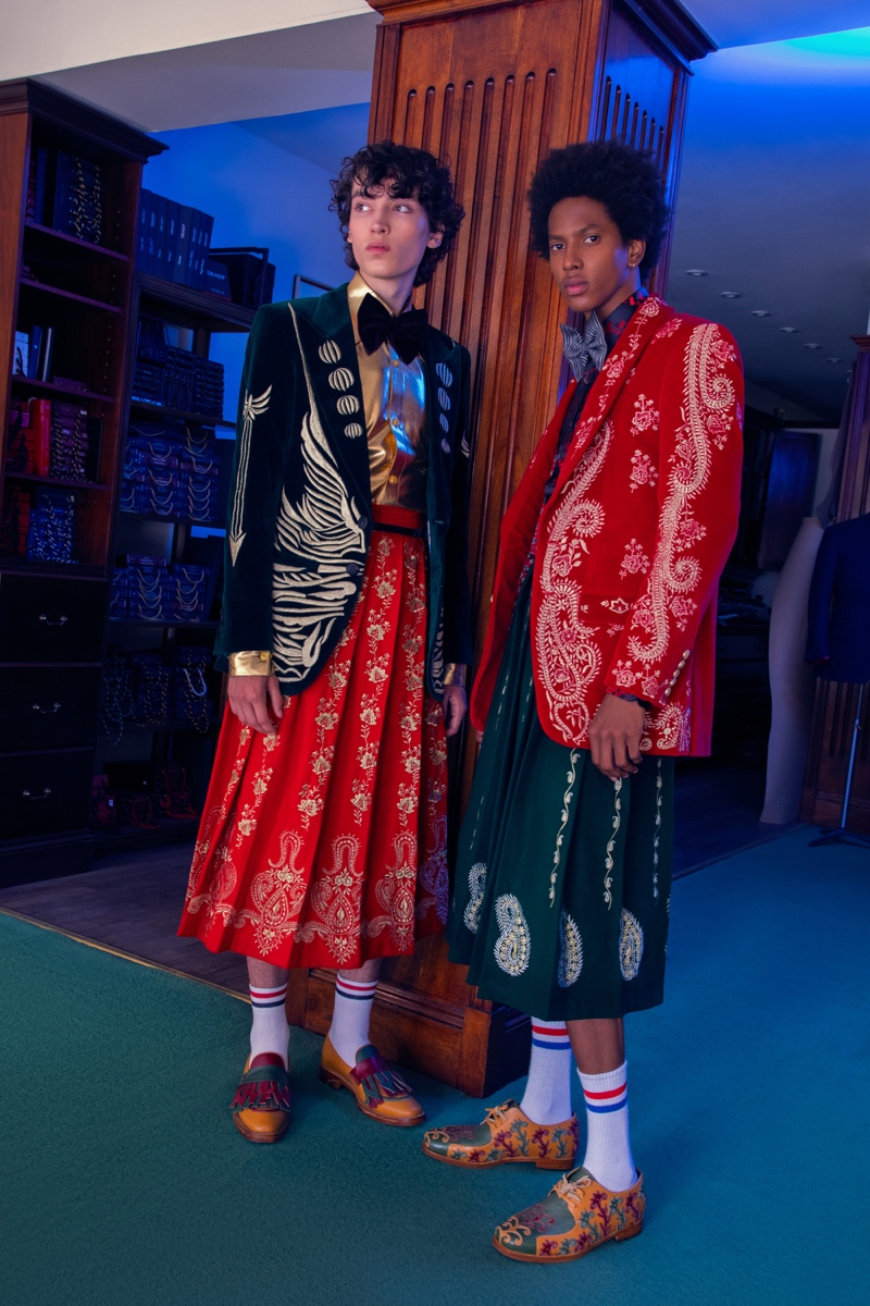 They join Hebe Wohlrab (Hive Model Management), Olivia Nosal (Hive Model Management), Karlijn Kusters (Elite Model Management), and Zara Bicha (Elite Model Management). Posing for a fitting, the models meet with tailor Andrew Ramroop. They sport Helen Anthony’s decadent designs for fall-winter 2018. Ornate fabrications arrive courtesy of the brand’s collaboration with Gladson.
