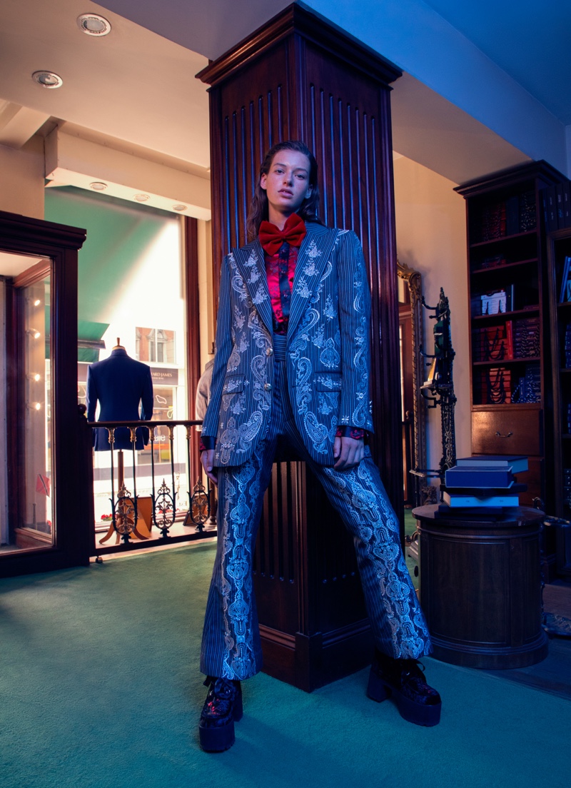 On the heels of a bohemian-inspired outing, fashion brand Helen Anthony is back in the spotlight. Kay Sukumar reunites with the label to capture a story on Savile Row. An interesting cast of characters, models come together at Maurice Sedwell Savile Row. Models Bertie Walker, George Kirkup-Delph (Models 1), Rafael Mieses (IMG London), and Geraint (Established Model Management) star in the editorial.