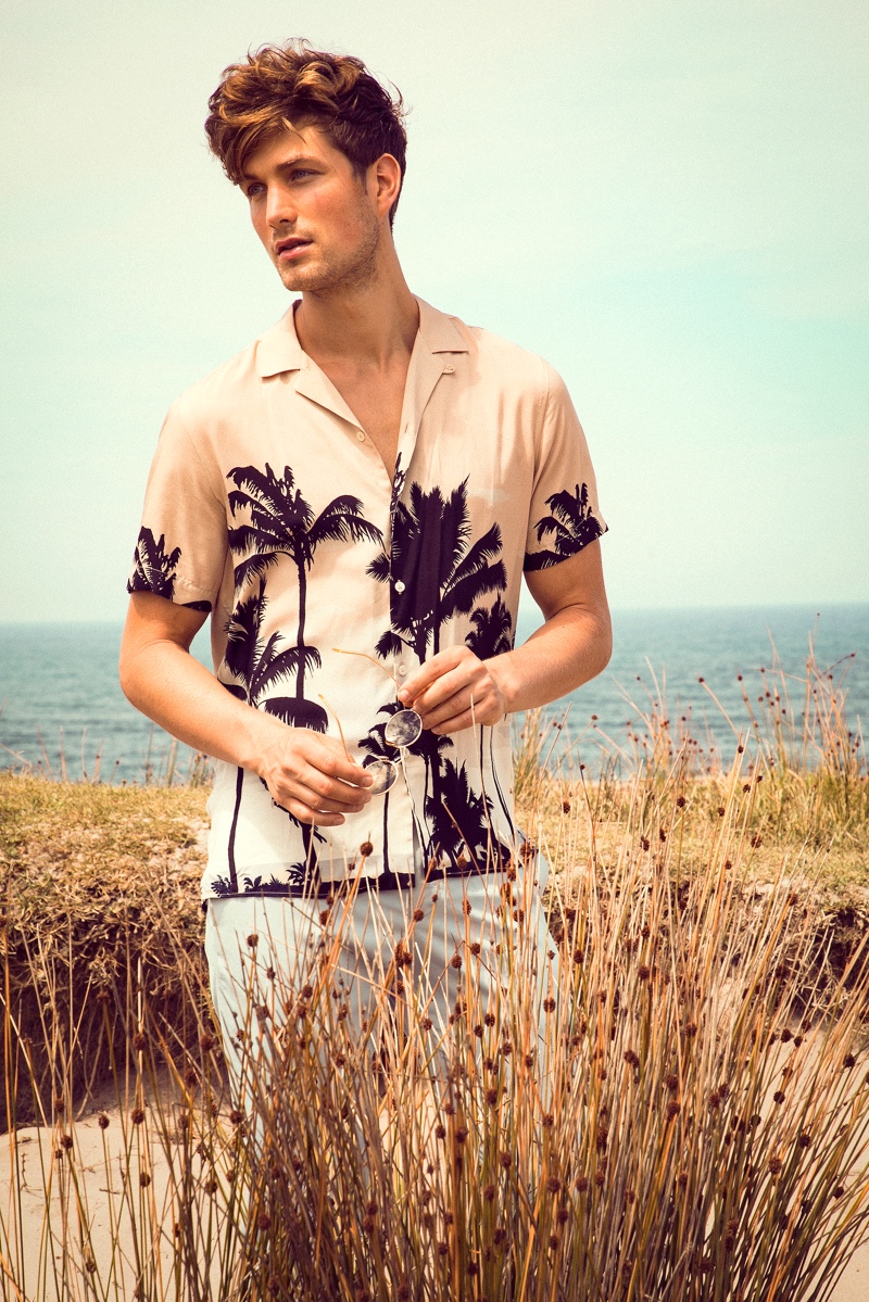 PinEmbracing a summer mood, Saxon wears a Zara camp-collar palm tree print shirt with pants.PinSaxon sports a tank, short-sleeve shirt, trousers, and cummerbund by Zara.PinDonning summer neutrals, Saxon wears a linen shirt and windowpane print pants from Zara.PinA summer vision, Saxon sports a Zara camp-collar shirt with trousers and TVR OPT glasses.PinRelaxing, Saxon wears a Zara linen shirt and pants with TVR OPT glasses.