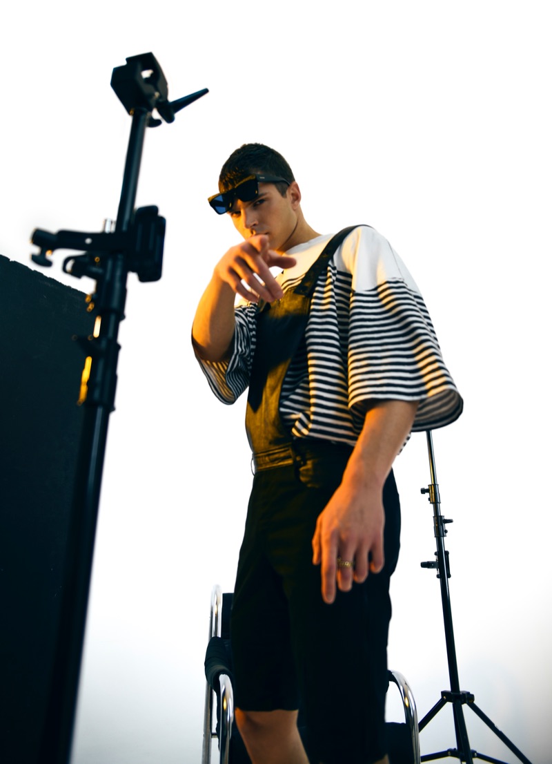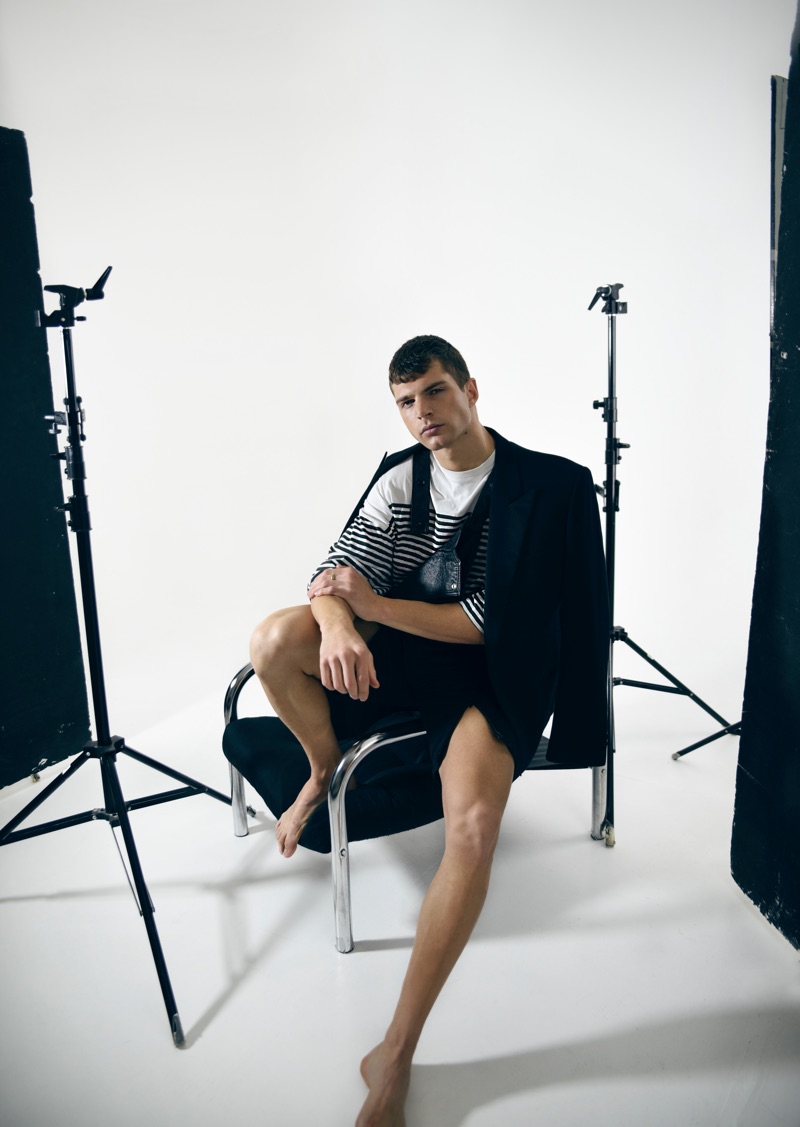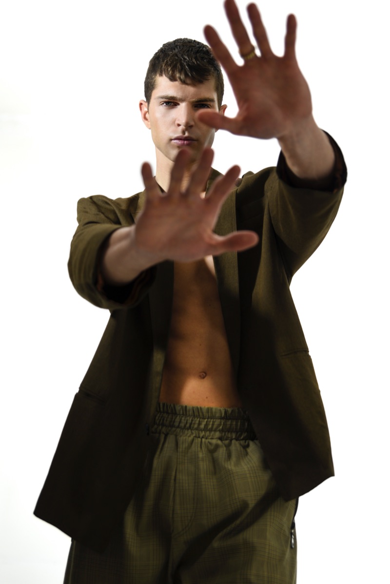 Photographer Giulia Salvadori collaborates with stylist Alessandra Bloom on a new story. The project comes together with a special focus on clothes from Jovån. Streetwear influences pervade high street aspirations for the edit. Bloom curates a selection of Jovån’s pieces to outfit model Davide Bettero (Elite Model Management). Studio-ready, Davide puts all hands on deck. Groomed by Alessandra Rizzo, David wears everything from denim to tailoring.