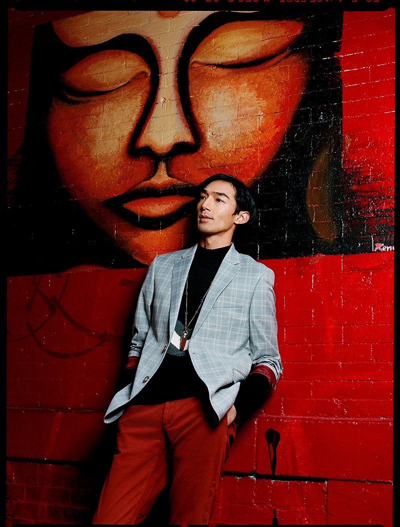 PinNaoki wears shirt Tommy Hilfiger, pants Alberto, jacket Odd Natives, shoes ONEGROUND, and ring Jill Herlands.PinNaoki wears shirt Public Opinion and jacket Carl Gross.