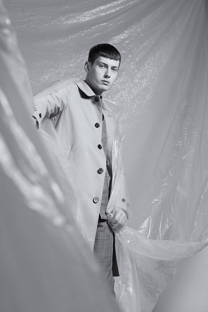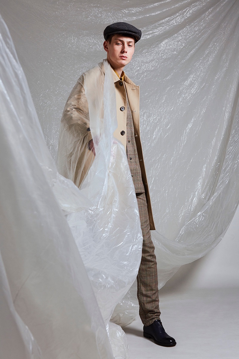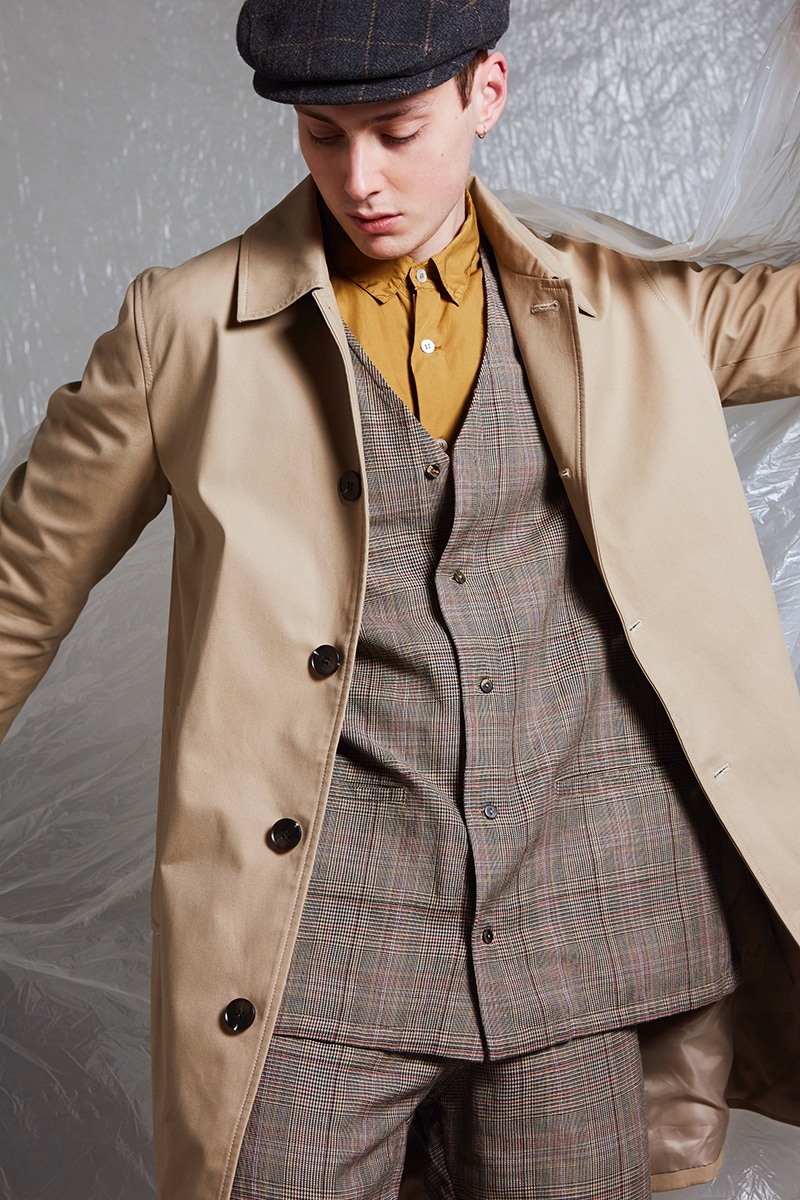 PinEverton wears shoes ASOS, jacket, shirt, and shorts by Omen.PinEverton wears jacket Omen.PinHubert wears trench coat and shoes Reserved, flat cap Wigens, blazer, shirt, and trousers Omen from Thomas i Punkt Hamburg.