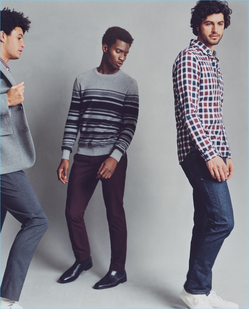 Express abides by classic menswear codes for its fall 2017 campaign. The brand serves up sophisticated wardrobe essentials. Models Adonis Bosso, David Alexander Flinn, and Markel Williams aid Express in showcasing easy to replicate looks. Approaching style for the constant professional, the label delivers plenty of smart shirt, tie, and trouser options. However, no worries if you prefer casual fashions. Key items like the biker jacket contribute to Express’ laid-back lineup.