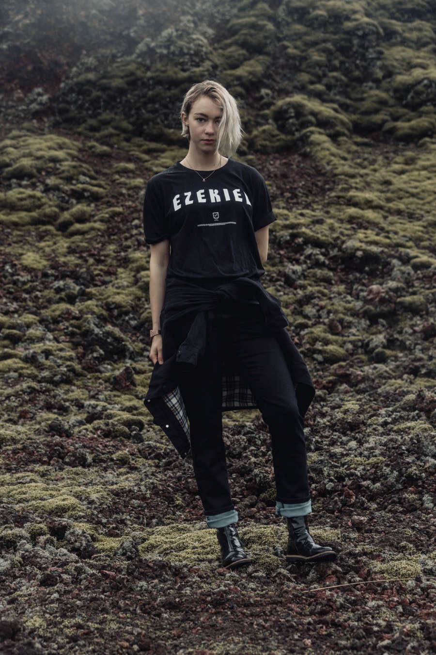 Sporting Ezekiel’s latest streetwear styles, models Callum Wilson and Ellie Fox are front and center. A relaxed array of garments champion everyday ensembles. From graphic t-shirts and work jackets to flannel shirts, Ezekiel serves up timeless pieces with a casual appeal.