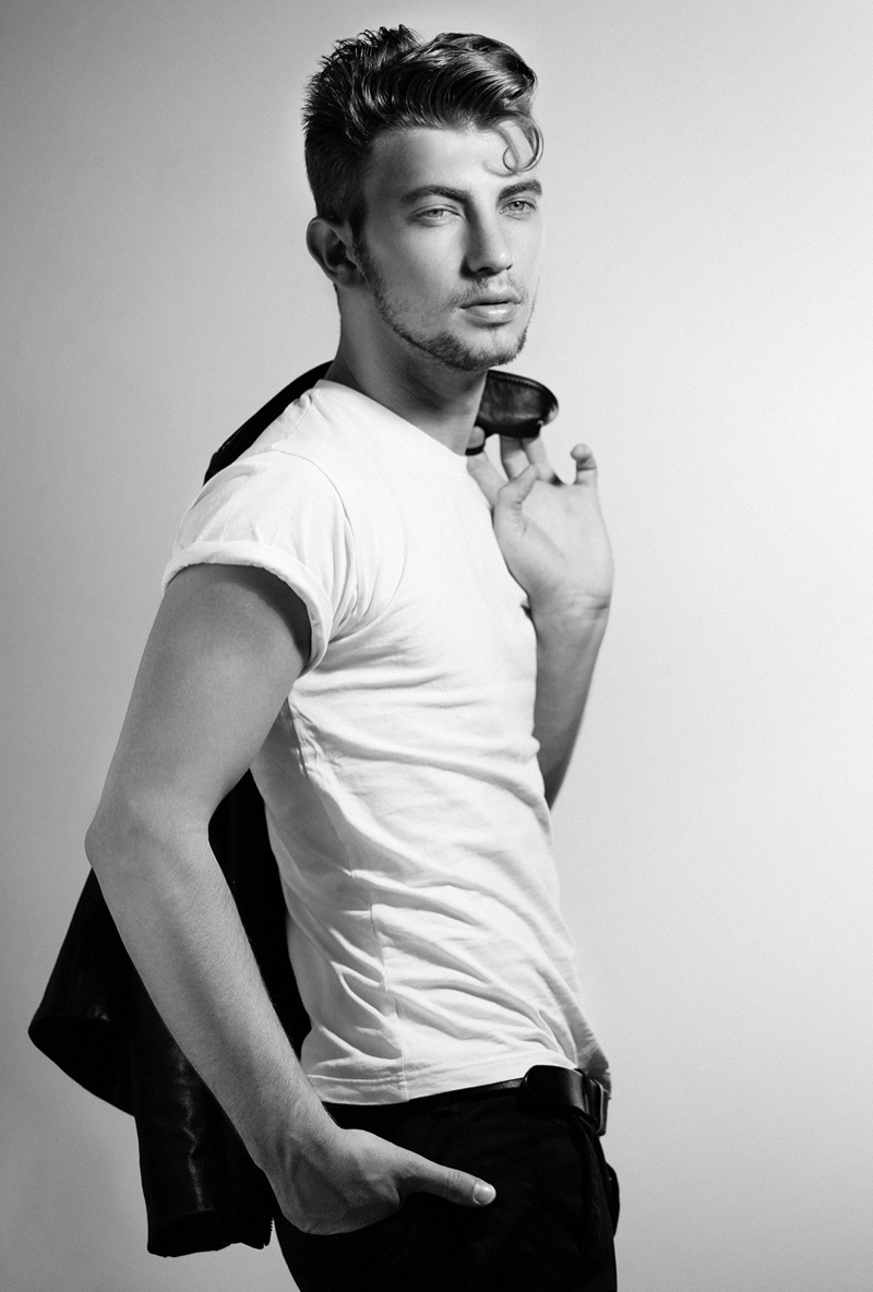 Fàbio Coentrão channels Old Hollywood with a 1950s-inspired portrait series called, ‘Hollywood Me.’ With a pompadour hairstyle and wearing a leather jacket, the Portuguese model brings to mind James Dean in ‘Rebel Without a Cause’ for the Andy Dyo snapped images.