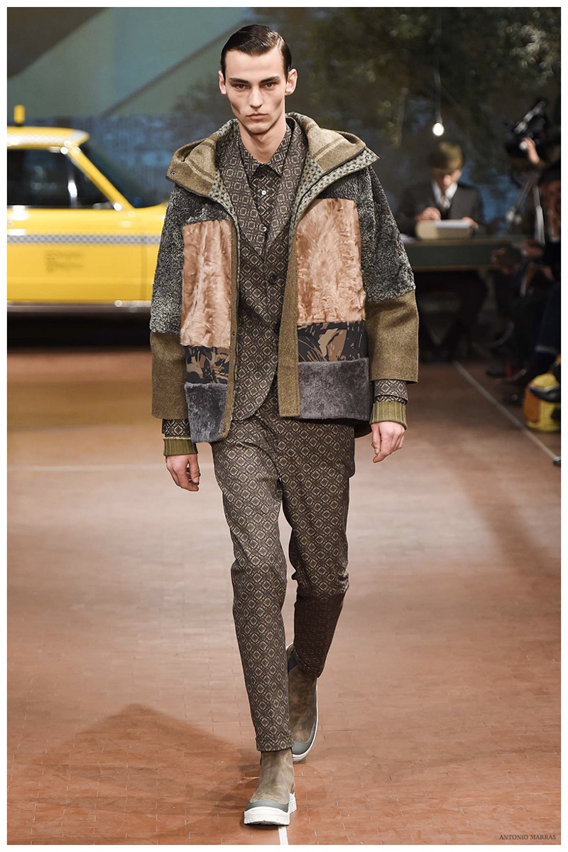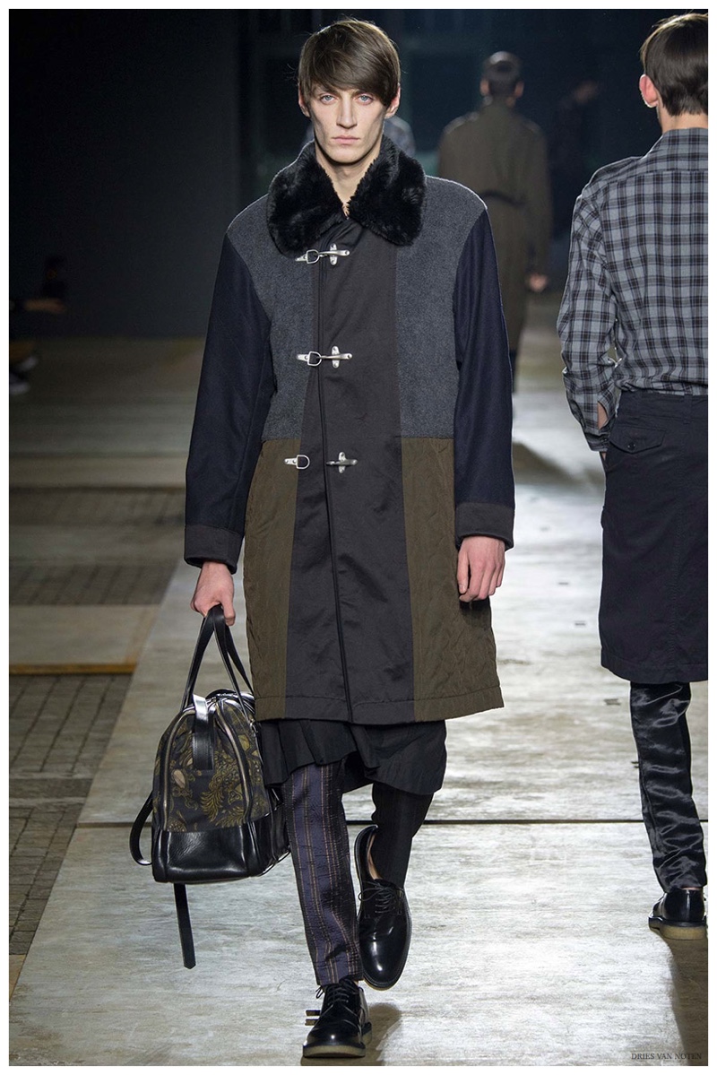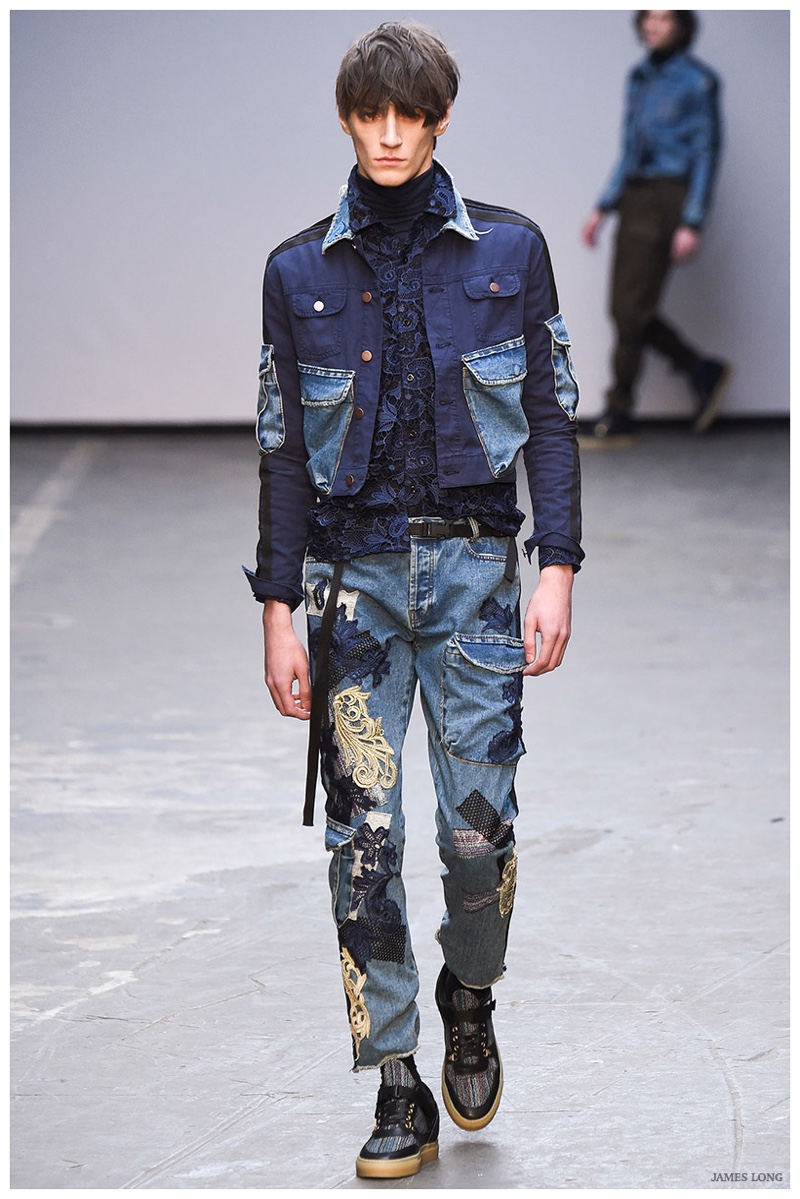 PinLeft to Right: Dries Van Noten, Kolor, Antonio MarrasPinAntonio Marras Fall-Winter 2015 Menswear Collection. Designer Antonio Marras was inspired by the movie Taxi Driver for his fall collection. The iconic movie provided for a smart selection of separates, which highlighted pieces like patchwork jackets, combining various materials and colors for an interesting take on the season.PinDries Van Noten Fall-Winter 2015 Menswear Collection. Belgian designer Dries Van Noten delivered a brilliant fall collection inspired by firemen. The firefighter jacket was reimagined here with a clever color blocking scheme and use of somber, complementary hues.PinKolor Fall-Winter 2015 Menswear Collection. Channeling the old west, Kolor served up a smart mix of colors and patchwork for a lineup of comfortable separates with a graphic appeal. Mixed or matched, Kolor’s latest provided for a confident remix of the usual.PinJames Long Fall-Winter 2015 Menswear Collection. One of the highlights of London Collections: Men, designer James Long brought a casual attitude to the plate for fall. Mixing fabrics and colors, Long remixed the elements of the denim jacket for a youthful undertaking.