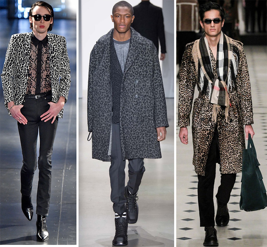 PinLeft to Right: Saint Laurent, Calvin Klein Collection, Burberry ProrsumPinBurberry Prorsum Fall-Winter 2015 Menswear Collection. Christopher Bailey has created a legacy at Burberry, dressing up the famed British fashion house’s classic outerwear designs with intricate prints and colors. For fall, Bailey embraces animal prints for an injection of attitude.PinJohn Varvatos Fall-Winter 2015 Menswear Collection. When it comes to designers, John Varvatos is the king of rock. Inspired by Bob Dylan, Varvatos delivered a fall outing, perfect for a day in Central Park. Among the lineup was a sharp, tailored leopard coat.PinCalvin Klein Collection Fall-Winter 2015 Menswear Collection. Creative director for Calvin Klein Collection menswear, Italo Zucchelli is best when revisiting classics with smart subtleties. Offering a quiet take on animal prints, Zucchelli delivered successful tonal prints.PinSaint Laurent Fall-Winter 2015 Menswear Collection. Saint Laurent creative director has successfully rebranded the fashion brand as the go-to for a rocker chic look. A design constant for the Saint Laurent man is animal prints and Slimane’s fall collection didn’t disappoint.