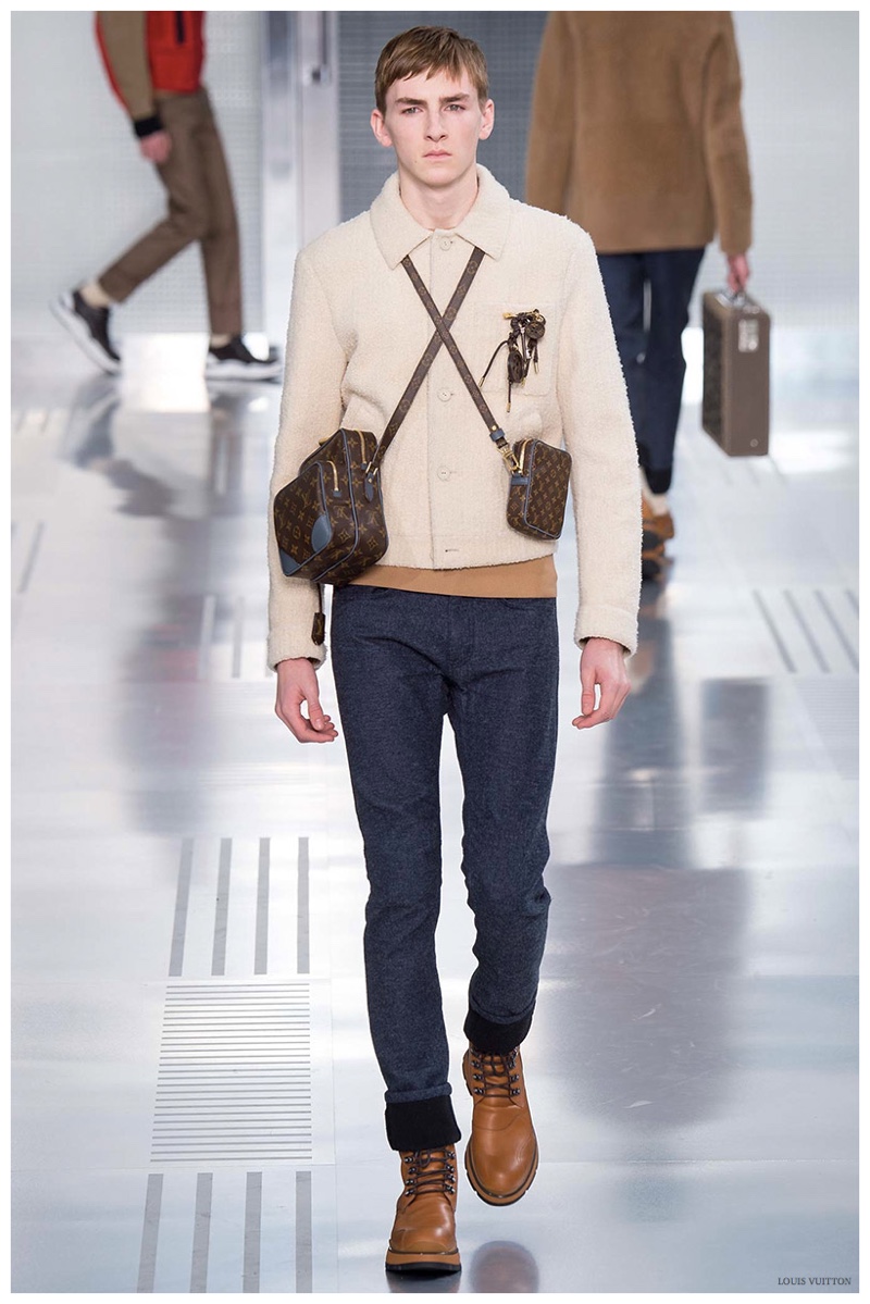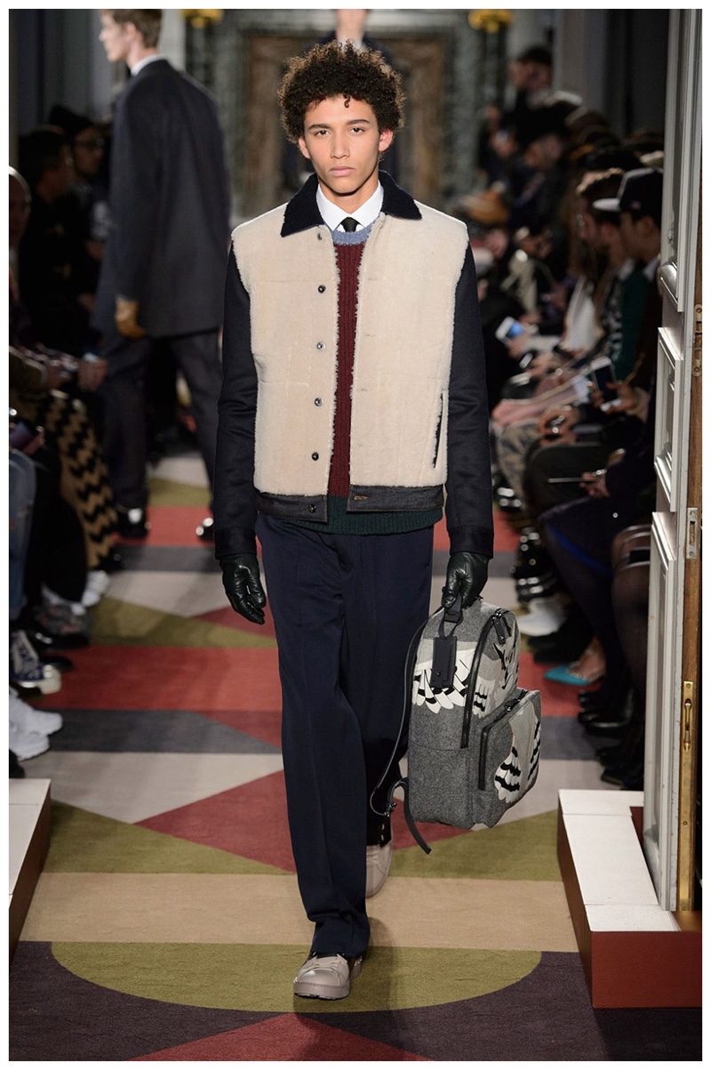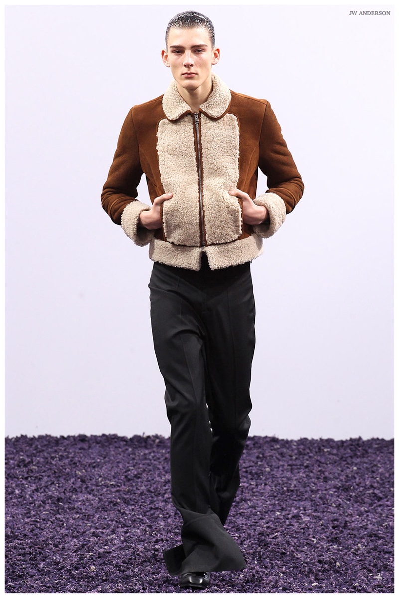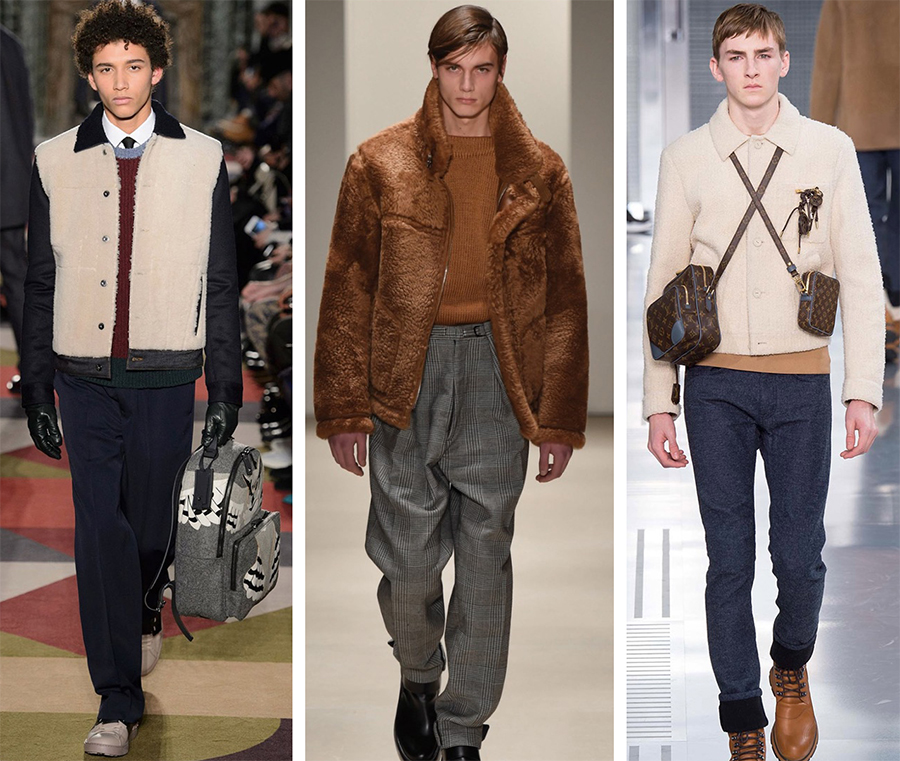PinValentino Fall-Winter 2015 Menswear Collection. Contrasting fabrics come together for Valentino’s contribution to fall’s shearling trend. Treated to a short jacket, Valentino’s man flexes a casual approach to luxury wear. The smart mix of fabrics makes the jacket a great addition to both casual and formal day looks.PinJil Sander Fall-Winter 2015 Menswear Collection. Minimal design meets a luxurious fabric treatment as Jil Sander flexes a rich attitude with a brilliant, short shearling jacket. Jil Sander’s fall collection marked Rodolfo Paglialunga’s first men’s outing as creative director.PinLouis Vuitton Fall-Winter 2015 Menswear Collection. Louis Vuitton creative director Kim Jones delivered a light hand as he revisited the iconic shirt jacket in a lightweight, stone colored shearling. The must-have jacket was part of a graphic collection inspired by the work of Christopher Nemeth.PinOvadia & Sons Fall-Winter 2015 Menswear Collection. Unveiling its fall collection during New York Fashion Week, Ovadia & Sons delivered slender fits and a lineup of separates ideal for urban living. Highlighting the shearling trend, Ovadia & Sons sent out a camel hued bomber jacket with modern details.