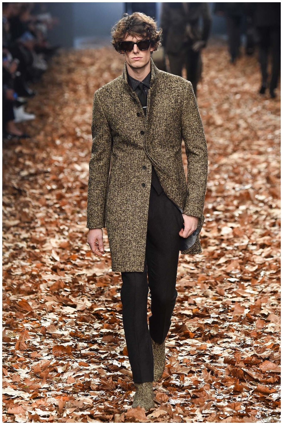 Fall-Winter 2015 Menswear Fashion Trends–Setting the trends for the season, designers unveiled their fall-winter 2015 menswear collections during Milan Fashion Week, New York Fashion Week, Paris Fashion Week and London Collections: Men. A common thread among the collections was a desire to make wearable, accessible everyday clothing, whether it was formal or casual. Placing the importance on textiles, many of the season’s trends were dictated by fabric choices. From shearling to corduroy, designers revisited classic staples with a modern flair. Other trends to emerge included patchwork, androgyny, a gothic approach to formalwear and the use of animal prints.