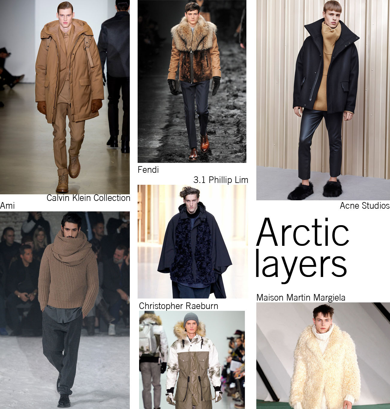 Designers have taken a ‘more is more’ approach to practicality, oversizing roll necks and adding fur to coat collars. That meant alpine hoods at Christopher Raeburn and sweaters that threatened to completely envelope the models at Ami. Acne Studios offered the most streamlined approach, but even there the silhouette was still exaggerated at the neckline.