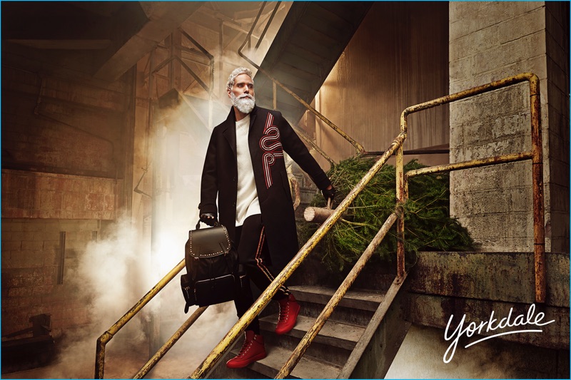When it comes to fashion, a wise model once said, “As you know in fashion, one day you’re in. And the next day, you’re out.” The same even goes for Santa Claus. This year, Yorkdale Mall celebrates the holidays, bringing back Fashion Santa. However, 31-year-old model Adam Martin replaces last year’s campaign star, 53-year-old, Paul Mason. Martin connects with photographer Chris Nicholls and stylist Jimmy Moorhouse for the festive occasion. Fashion Santa taps into modern trends, donning a red and black wardrobe, which features brands such as Valentino and Dries Van Noten.