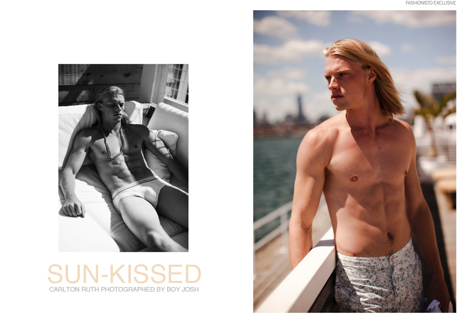Sun-kissed-After helping us usher in summer, Elmer Olsen model Carlton Ruth returns to close out the season with a new story lensed by photographer Boy Josh. Taking it easy on a relaxed summer day, Carlton poses for Boy Josh in a simple wardrobe of essentials that includes floral print shorts from Theory, Calvin Klein underwear, smart blazers from Topman and more.