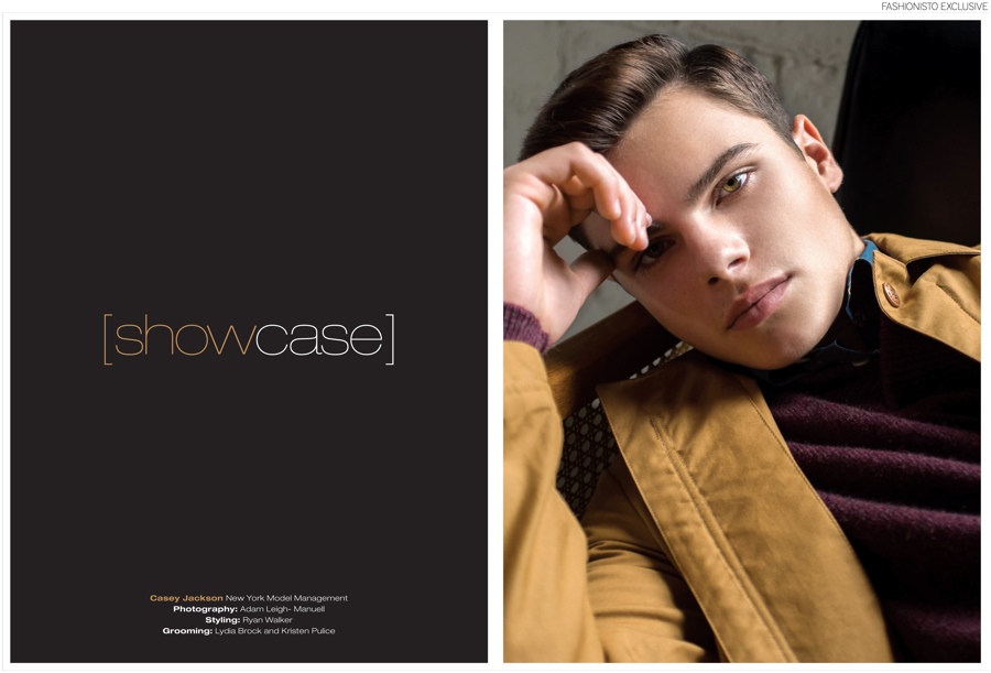 Showcase-After a sporty outing, amazing fresh face Casey Jackson (New York Models Management) returns for part two of his Fashionisto debut, lensed by fashion photographer Adam Leigh-Manuell. This time around, Casey is styled by Ryan Walker in a smart but stylish wardrobe, consisting of youthful essentials from Topman, Tom Ford and other fashion brands. / Grooming by Lydia Brock and Kristen Pulice.