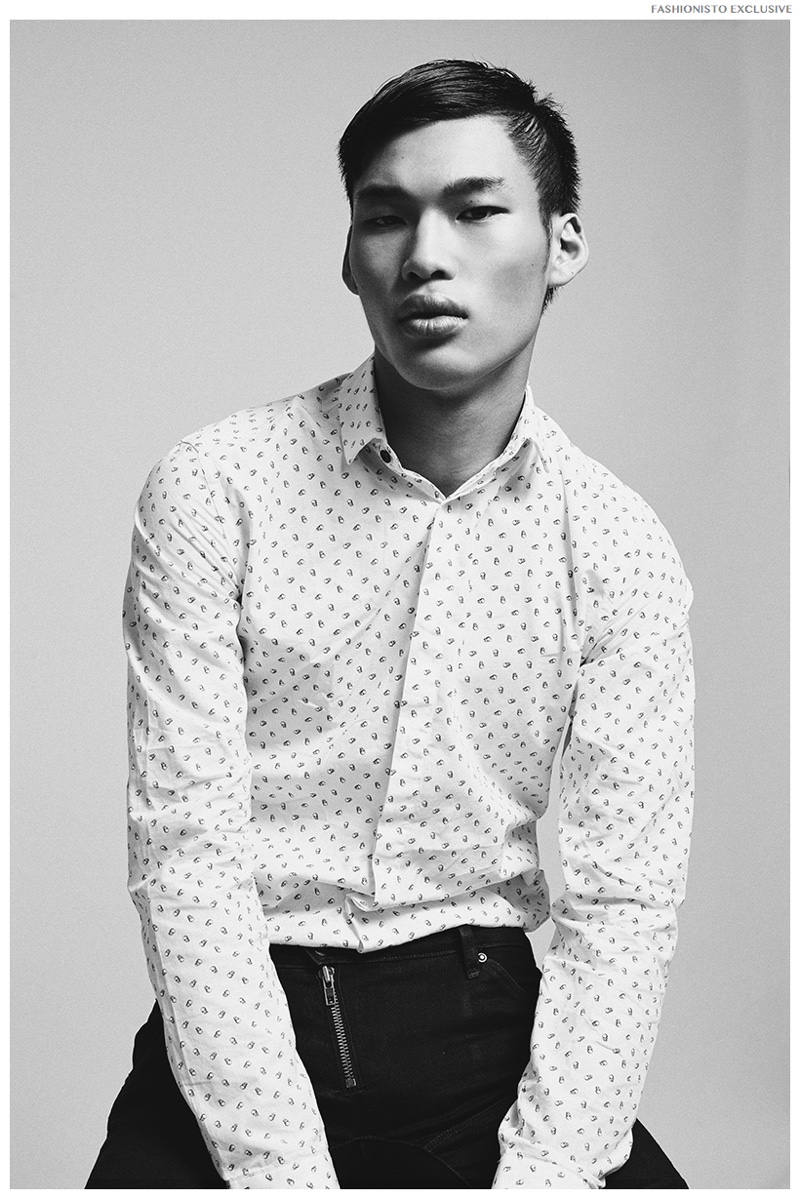 Chun wears shirt Zara and jeans G-Star Raw.