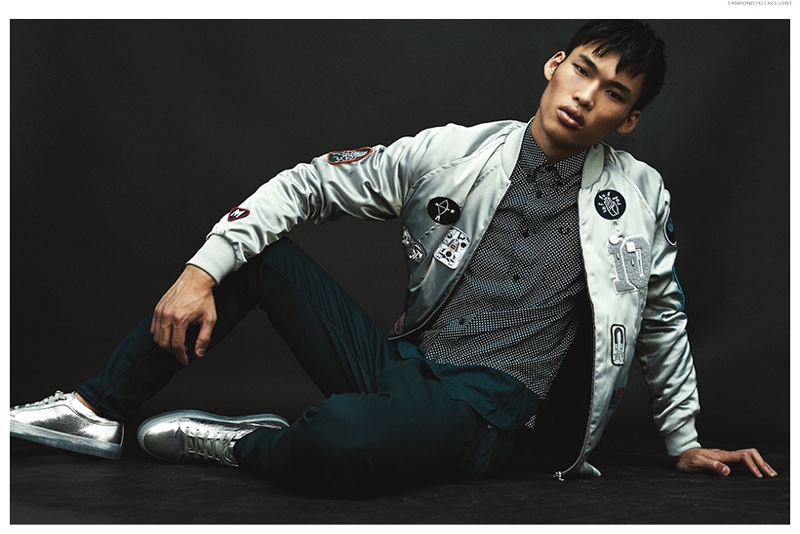 Chun wears bomber jacket G-Star Raw, t-shirt Fred Perry, jeans Massimo Dutti and shoes Zara.Pin