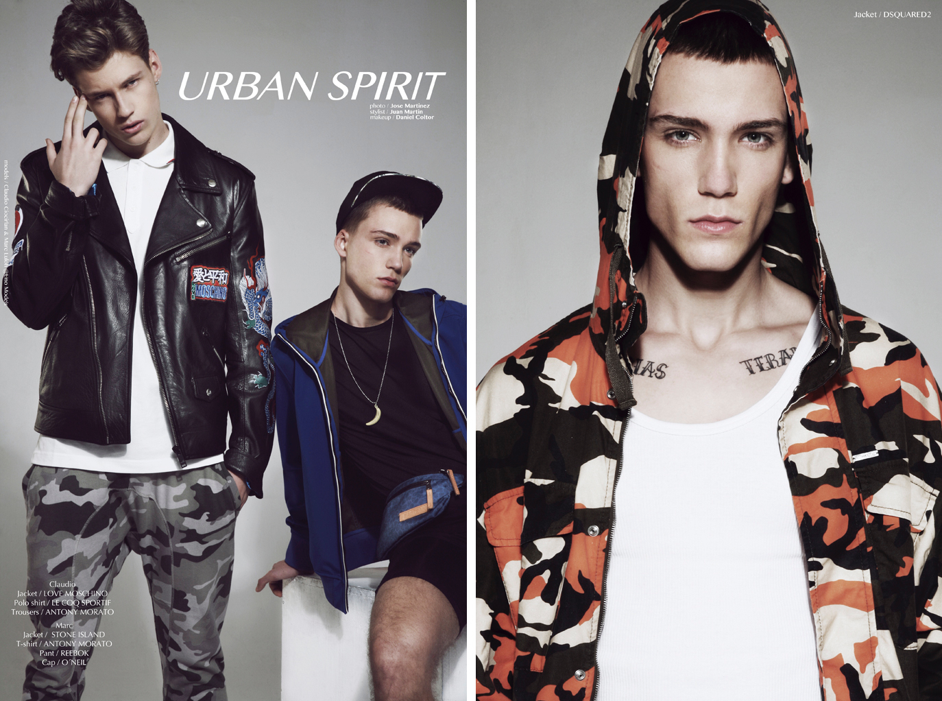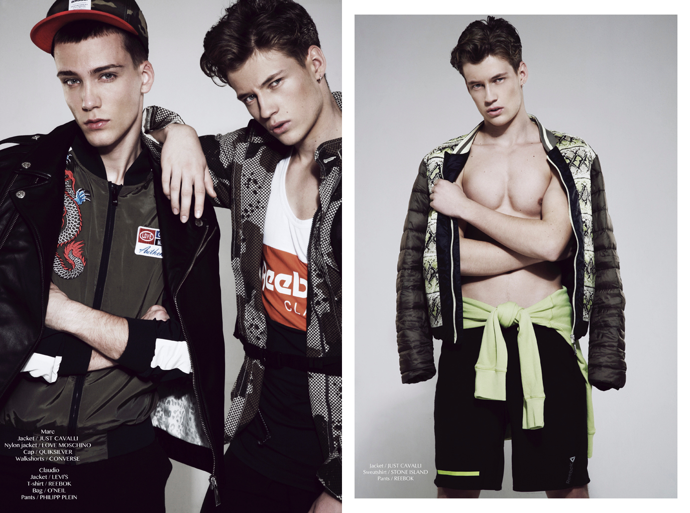 Urban Spirit–Models from UNO’s New Faces board, Claudio Ciocirlan and Marc Lüloh come together for a sporty exclusive from photographer Jose Martinez. Teaming up with stylist Juan Martin, Martinez captures a fun shoot that champions laid-back fashions with a certain pop. Whether it’s an electric print or a modern fit, Martin shows that there’s no reason for your wardrobe to be boring, just because you’re playing it relaxed.