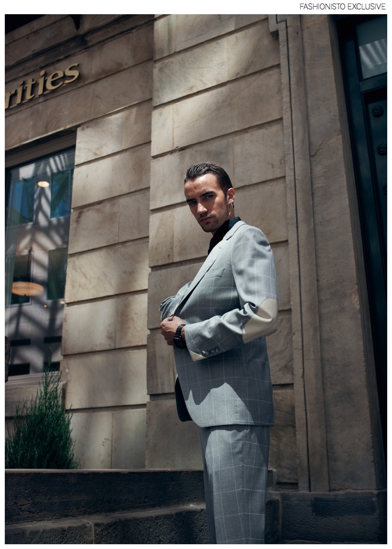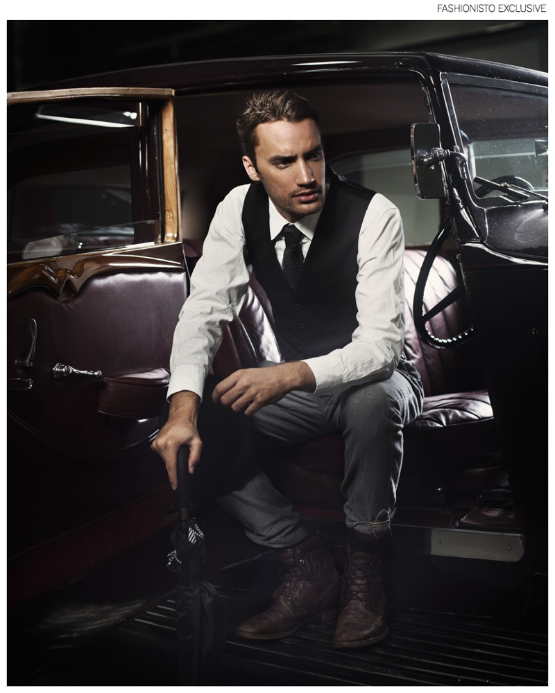 Sartorial Minute-Elite Toronto model Clement steps into the spotlight with a new shoot lensed by fashion photographer Tina Picard. Offering a fine sartorial edge, Clement easily cleans up, delivering a dapper performance in tailored suiting featuring classic prints. Captured out and about town as well as posing in classic cars, Clement proves that he is forever the gentleman.