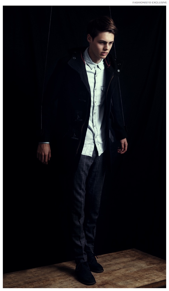 Darwin wears coat Sixty, trousers and denim shirt H&M.Pin