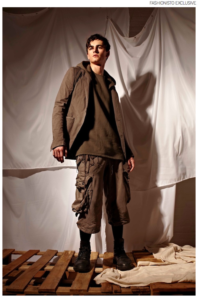 Post-Industrial Nomad-Photographer Travis Komarnisky and stylist Juan Solorzano bring their creative minds together for a new exclusive centered around the idea of a modern, post-industrial nomad. Featuring labels with a penchant for dark, dramatic silhouettes and proportions, pieces from Julius_7, Rick Owens and more contribute to a must-have wardrobe modeled by Elite Toronto’s Derek.