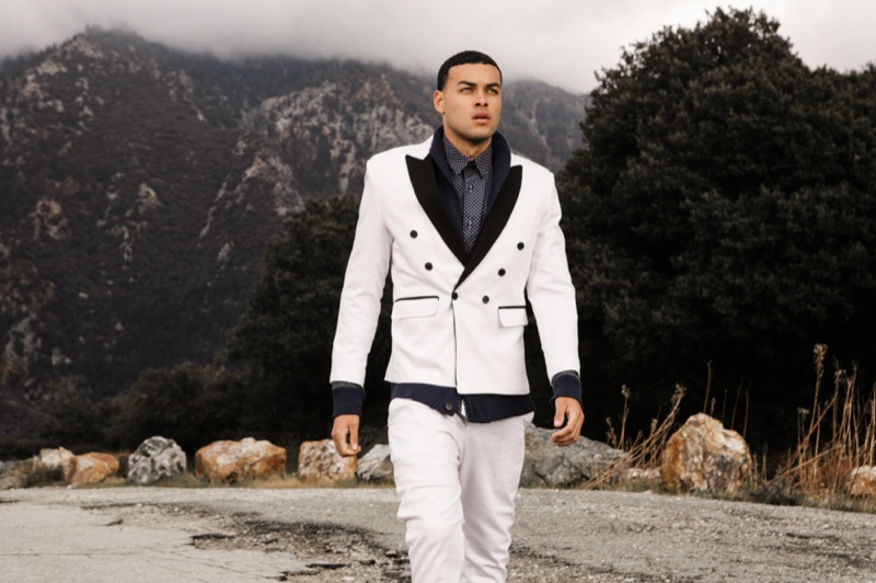 Showcasing the latest from independent fashion labels, ranging from Wayward to Azul by Moussy, stylist Ja’Niya Walker outfits Don in bold standout looks that combine tailoring with luxe materials. / Photo assistance by Kelli Scates. Makeup by Sandy Bee.