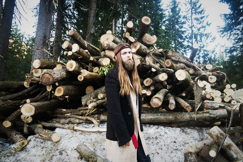 Enok wears jumper and pants GentryPortofino, blanket as cape Woolrich and gloves stylist’s own.