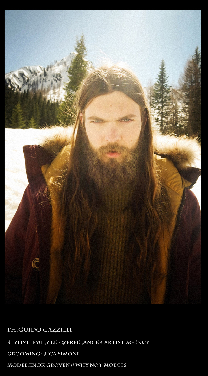 Highlander–Photographer Guido Gazzilli travels to the snowy mountains for our latest exclusive. Collaborating with stylist Emily Lee (Freelancer Artist Agency), Gazzilli focuses his lens on WhyNot model Enok Groven. Ready for fall/winter 2014, Enok enchants in a cold-weather wardrobe that includes layers from Calvin Klein, GANT, Levi’s and other accessible fashion brands. / Grooming by Luca Simone.