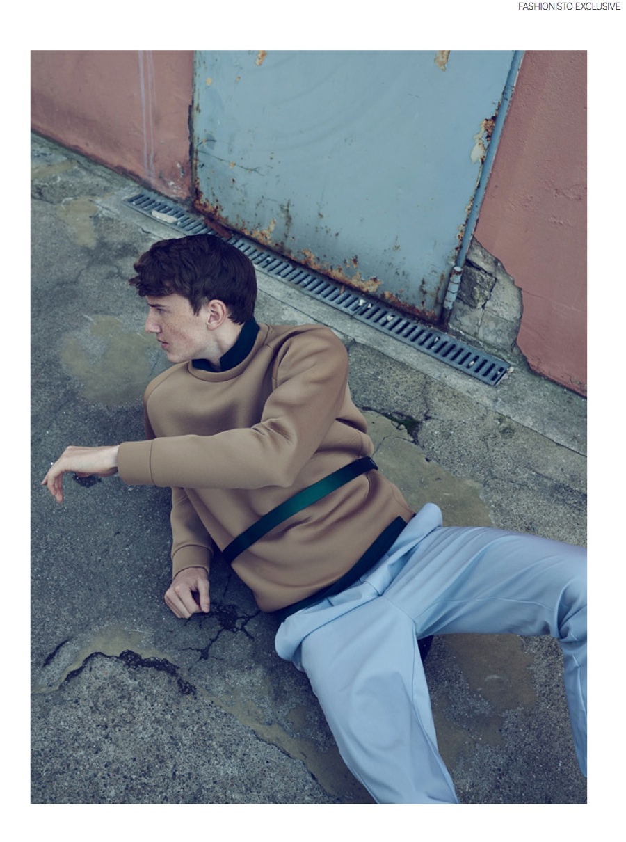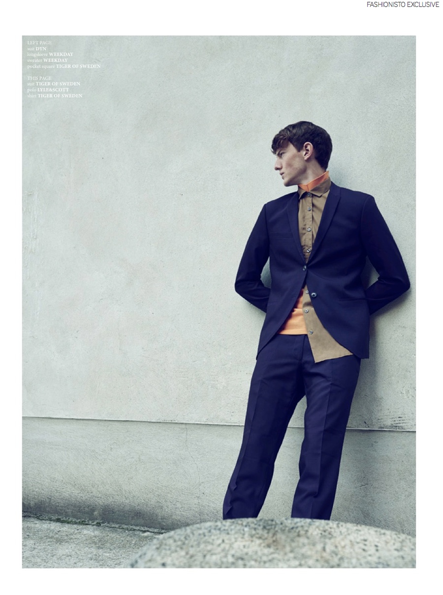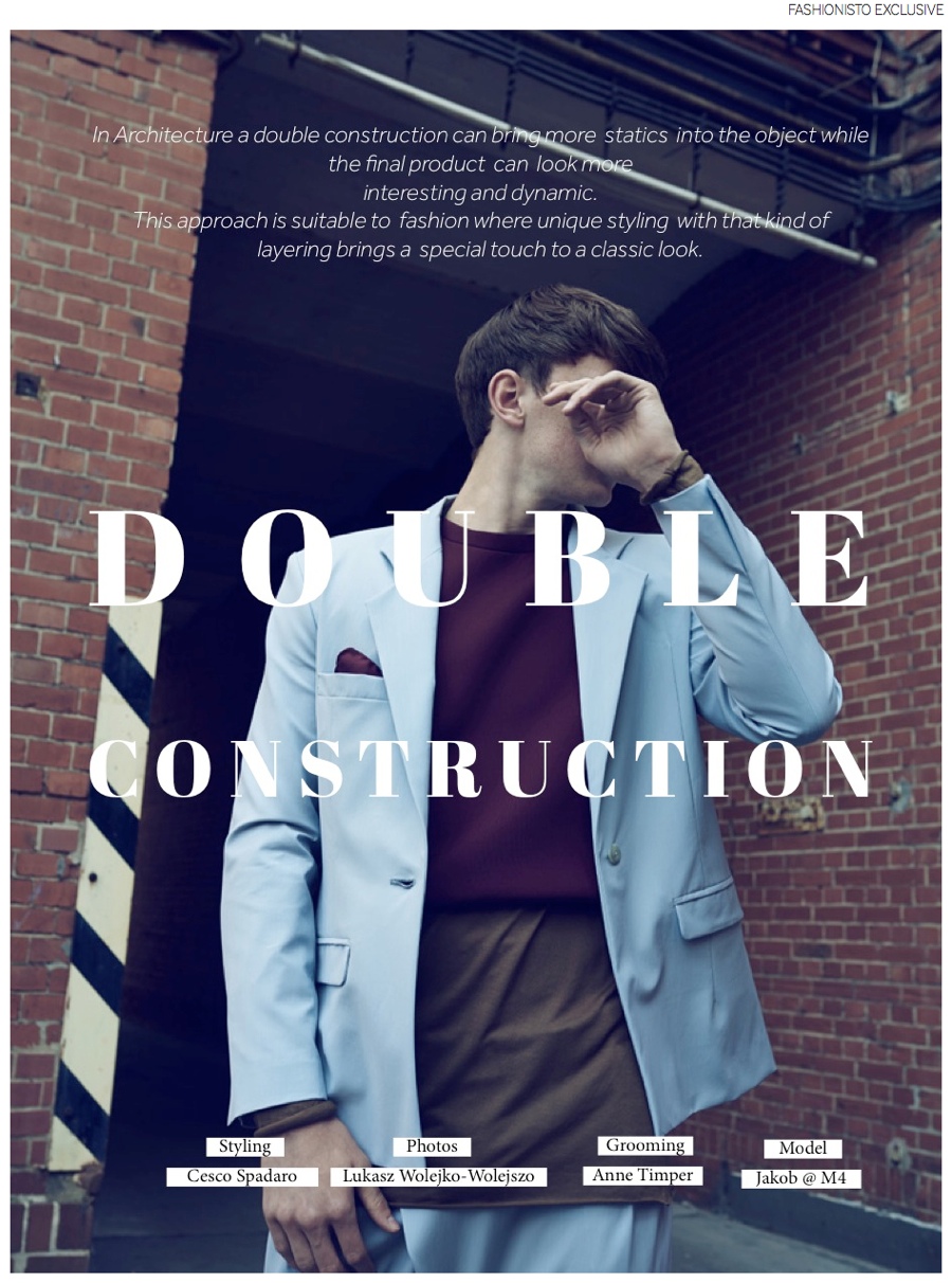 Double Construction-Photographer Lukasz Wolejko-Wolejszo returns to our pages with a new fashion editorial, made in collaboration with stylist Cesco Spadaro. Revisiting classic essentials such as the blazer and pleated trousers with a skillful take on layering, Spadaro outfits M4 model Jakob in winning fall looks from labels that include Tiger of Sweden, Lyle & Scott and Weekday. / Grooming by Anne Timper.