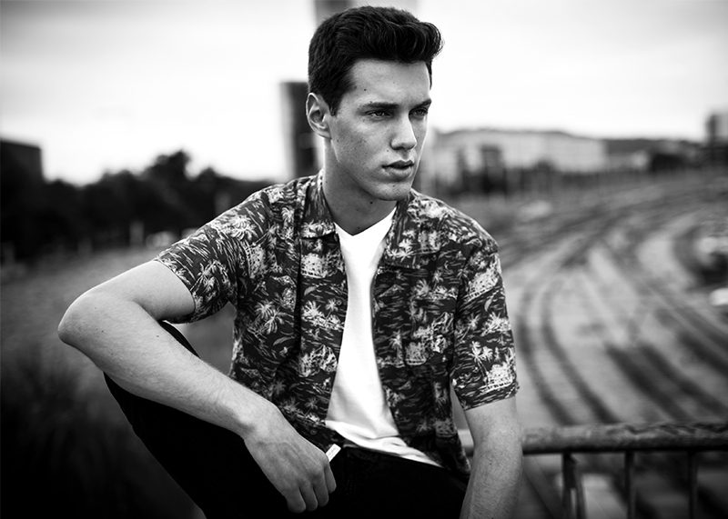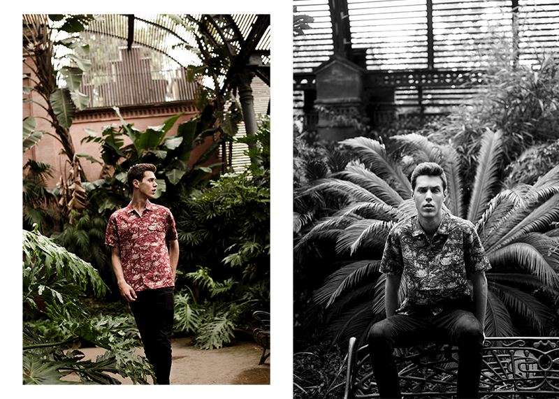 Tropical Stay–Blow Models fresh face Javier R. stars in our latest exclusive, connecting with photographer Jorge Arberas. Dreaming up a casual outing that coincides with one of the season’s biggest trends, Javier poses for images in an accessible wardrobe highlighting tropical prints. Clothes from H&M, Zara, Diesel and more contribute to a laid-back outing.