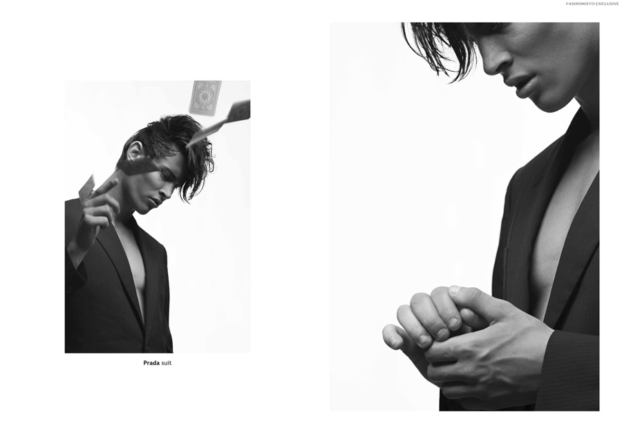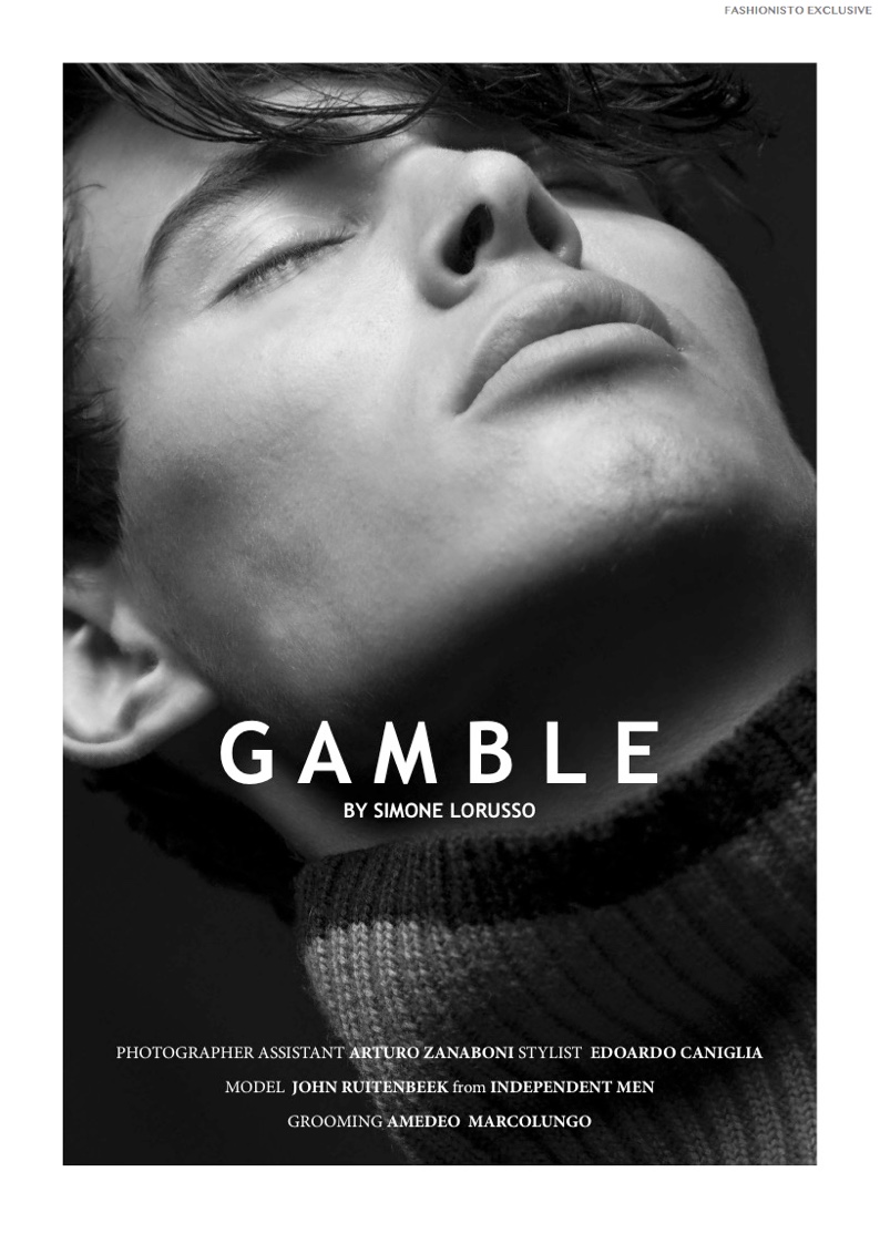 Gamble-Photographer Simone Lorusso’s most recent exclusive reunites us with Independent Men model John Ruitenbeek, who graced the pages of the winter-spring 2012 edition of Fashionisto. Now, a little over two years later, John stars in Gamble. Outfitted by stylist Edoardo Caniglia, John is a natural in front of the camera, hitting just the right angles for a quiet black & white story featuring fashions from Etro, Prada, Fendi and Versace. / Photo assistance by Arturo Zanaboni. Grooming by Amedeo Marcolungo.