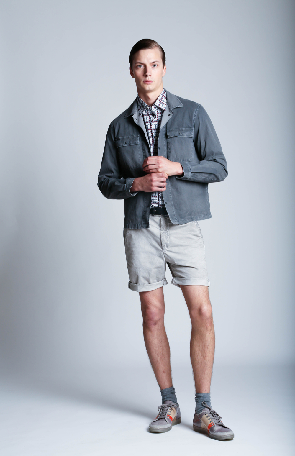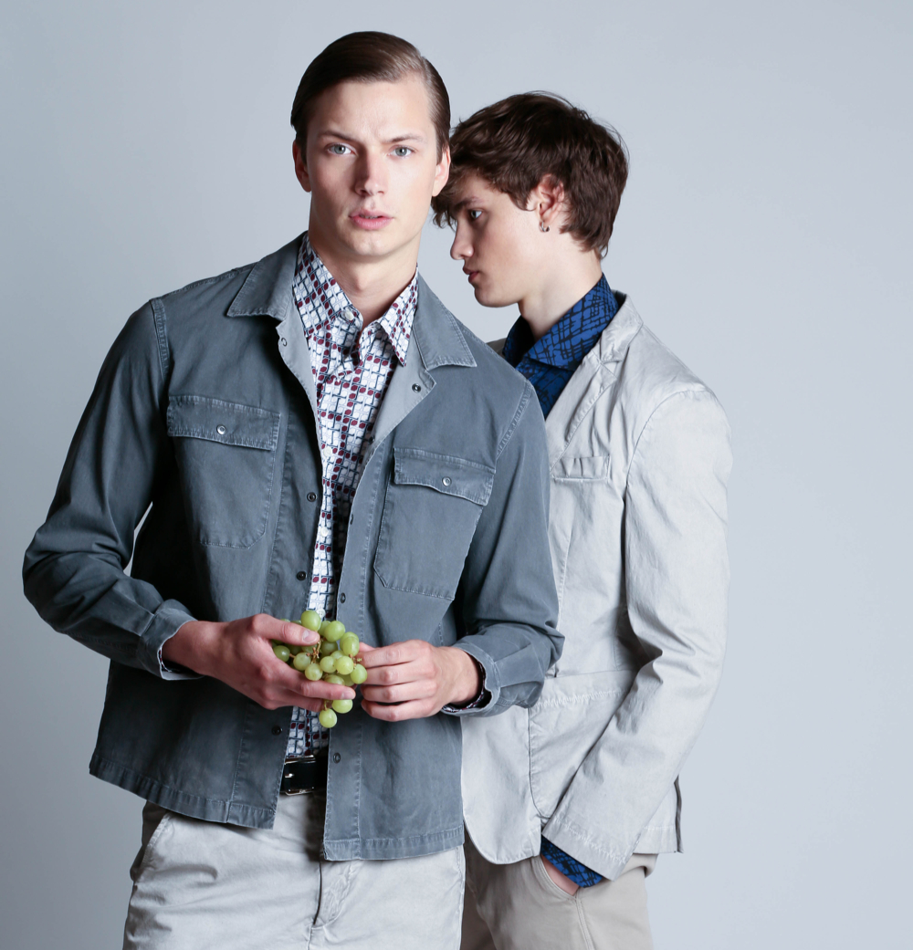 Left to Right: Linus wears shirt and belt Brioni, jacket and shorts Dondup. Vladimir wears shirt Brioni, jacket Dirk Bikkembergs and pants Dondup. Pin