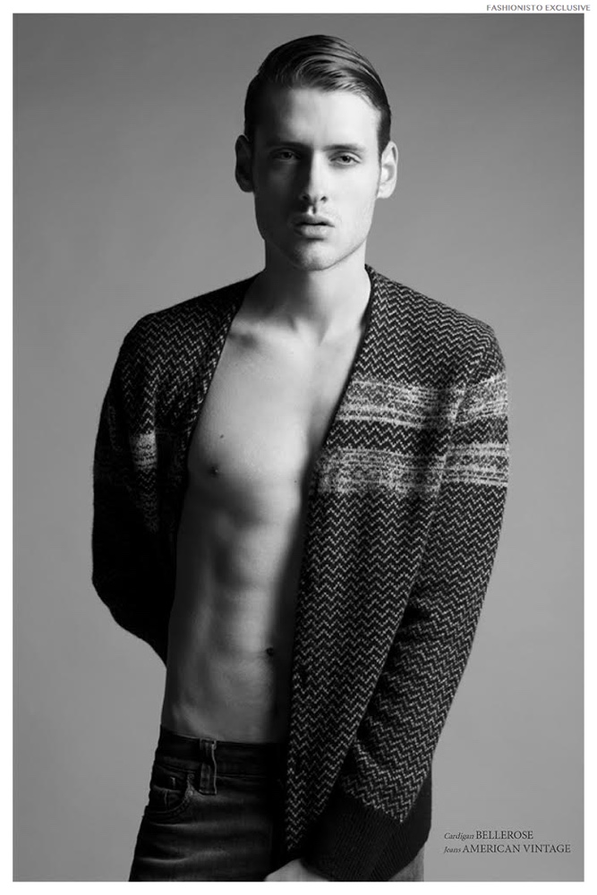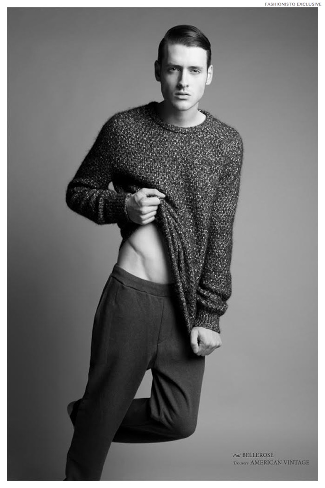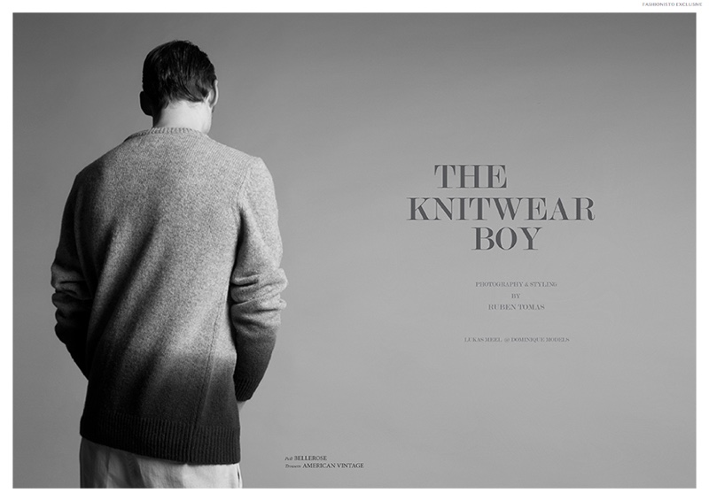 The Knitwear Boy-Making his Fashionisto debut, model Lukas Meel (Dominique Models) has quite the shoes to fill. The brother of model Matthijs Meel, the Belgian fresh face connects with photographer Ruben Tomas for a knitwear story. Taking to the studio with a black & white series, Lukas delivers serious images with knitwear featured from Bellerose and American Vintage.