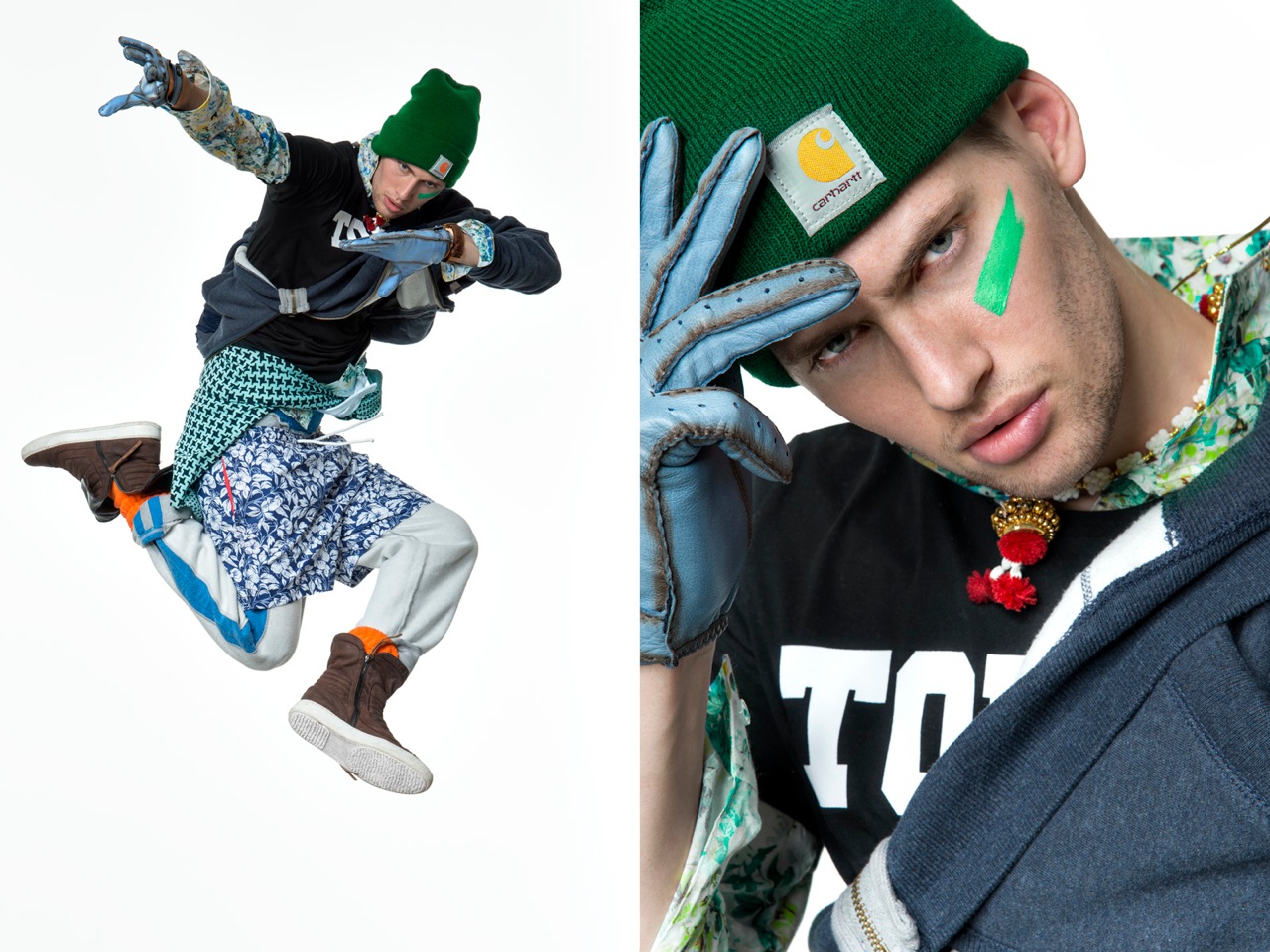 Just Inside Out–Stylist Andreas Beckedahl presents an eclectic wardrobe with a fun attitude for our most recent exclusive. Beckedahl collaborates with photographer Estelle Klawitter to deliver the amazing outing. At the story’s center is Kult model Marco Rodriguez, who is captured in exciting motion as he wears endless layers featuring pieces from Polo Ralph Lauren, Dior Homme, Scotch & Soda and more.