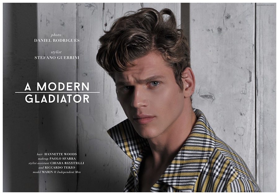 A Modern Gladiator–Independent Men model Marin Barba Rosie is front and center for a new exclusive lensed by fashion photographer Daniel Rodrigues. Tackling the role of a modern gladiator, Marin gets help in the fashion department from stylist Stefano Guerrini. Wearing bold pieces, Marin sports articles from Dirk Bikkembergs, O.X.S. and more. / Hair by Hannette Woods. Makeup by Paolo Sfarra. Style assistance by Chiara Rizzitelli and Riccardo Terzo.